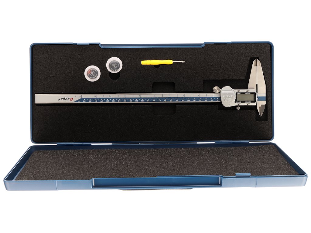 Scală digitală metalică cu domeniu de măsurare 300 mm. Precizia măsurătorii 0,02 mm. Măsurarea în milimetri şi inch, semnalizator baterie descărcată.