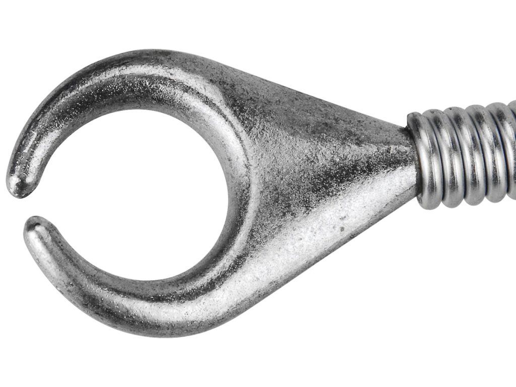 Terminație bifurcată a arcului pentru o curățare mai ușoară și mai eficientă a canalizației înfundate, suprafața cromată a sârmei mărește rezistența spiralei împotriva mediului agresiv din interiorul canalizației. Lungime 15 m, grosime 9 mm.