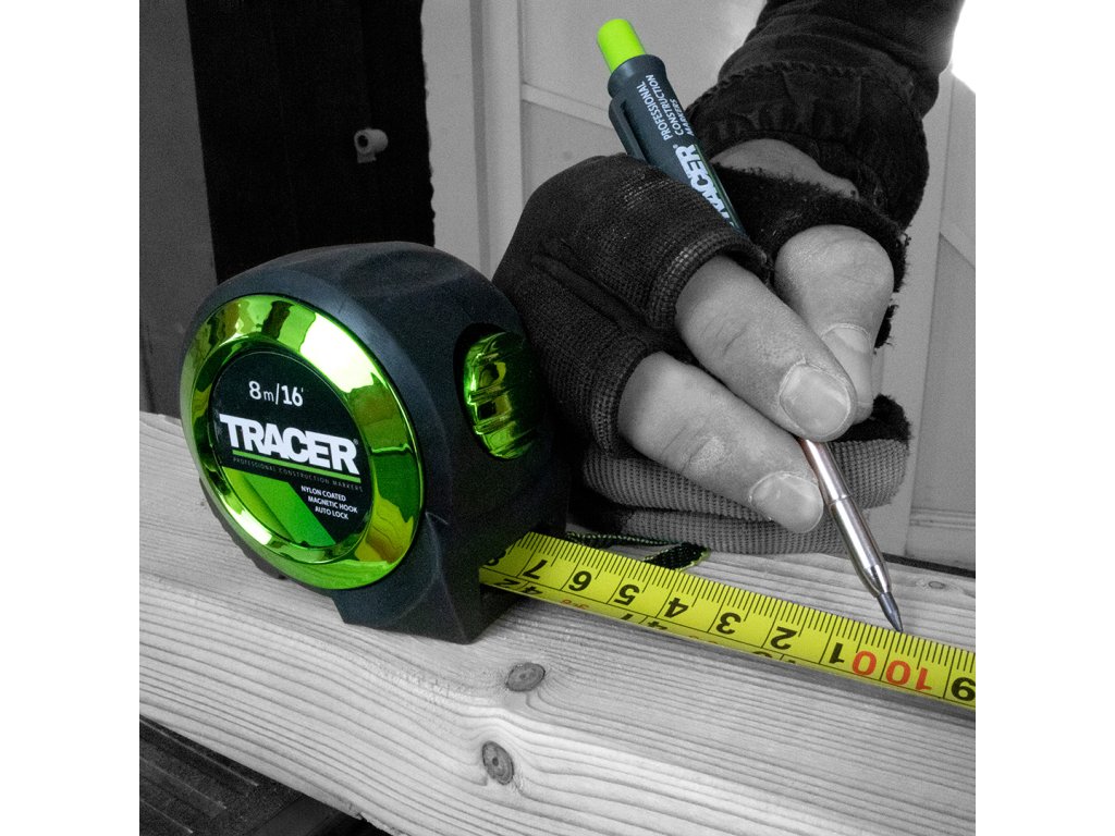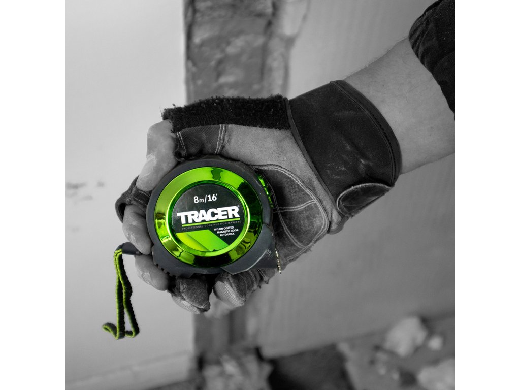 Bandă de măsură de la marca Tracer, care facilitează măsurarea datorită detaliilor sale inteligente. Un instrument de măsurare de calitate complet cu funcție de blocare automată a înfășurării și cârlig magnetic.