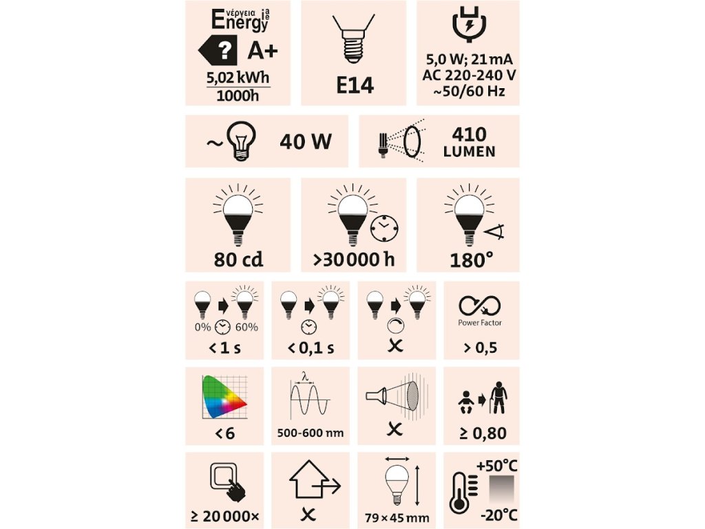 - Temperatura luminii: 2800K, unghi de intensitate luminoasa: 180°, straluceste ca un bec incandescent de 40W, dimensiune: 80 × 45mm