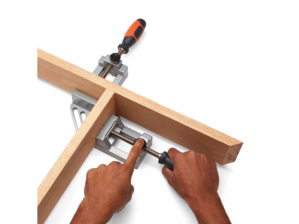 Un unghi drept este cel mai comun unghi în prelucrarea lemnului. Această clemă de colț de 90° vă permite să vă fixați proiectele cu precizie, rezistență și viteză absolută. Ideal pentru lucrul la tocurile de ferestre și uși sau mobilier. Mânerul mobil cauciucat poate fi rotit pentru a crește presiunea de prindere. Maxilarul poate susține material de până la 6,3 cm lățime. Clema este un aluminiu turnat puternic și durabil, care poate rezista chiar și la tratamente dure.