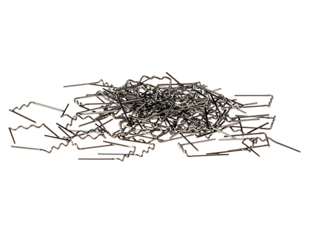 Potrivită pentru sudarea și întărirea pieselor din plastic rupte. Pentru rupere ușoară părțile ieșite prevăzute cu tăieturi. Este formată cu îndoiri ondulate ale sârmei cu diametru de 0,8 mm. Destinată aparatului de sudat mase plastice, nr. com. 19272. Ambalajul conține 100 buc.
