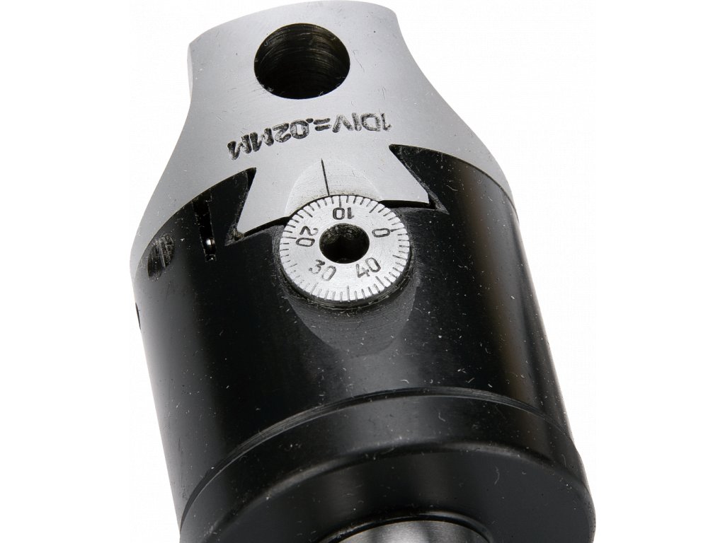 Capul servește la găurirea diametrelor mai mari în piese la care forma lor și poziția găurilor nu permit prelucrare prin strunjire. Capul cu diametrul exterior Ø 50 mm cu prindere MK3 este prevăzut cu o sanie mobilă (deplasare 19 mm) cu șurub cu avans micrometric. Cuțitele (diametrul 12 mm) pot fi prinse în paralel sau perpendicular pe axă, pasul orificiilor de prindere 16 mm. Ø min. de găurire 10 mm, Ø max. de găurire depinde de materialul și scula folosită. Lungimea capului separat 60 mm. Setul, în afară de cap, conține 5 buc. cuțite din oțel rapid de diferite lungimi și chei imbus.