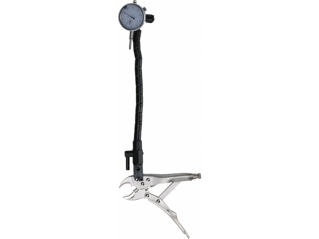 Ceas comparator de calitate cu braţ flexibil şi cleşte cu strângere automată pentru o utilizare foarte largă, îndeosebi la necesitatea fixării suportului pe o suprafaţă nemagnetică. Braţul flexibil se poate fixa în orice poziţie, lungime 300 mm. Ambalare în cutie din plastic.