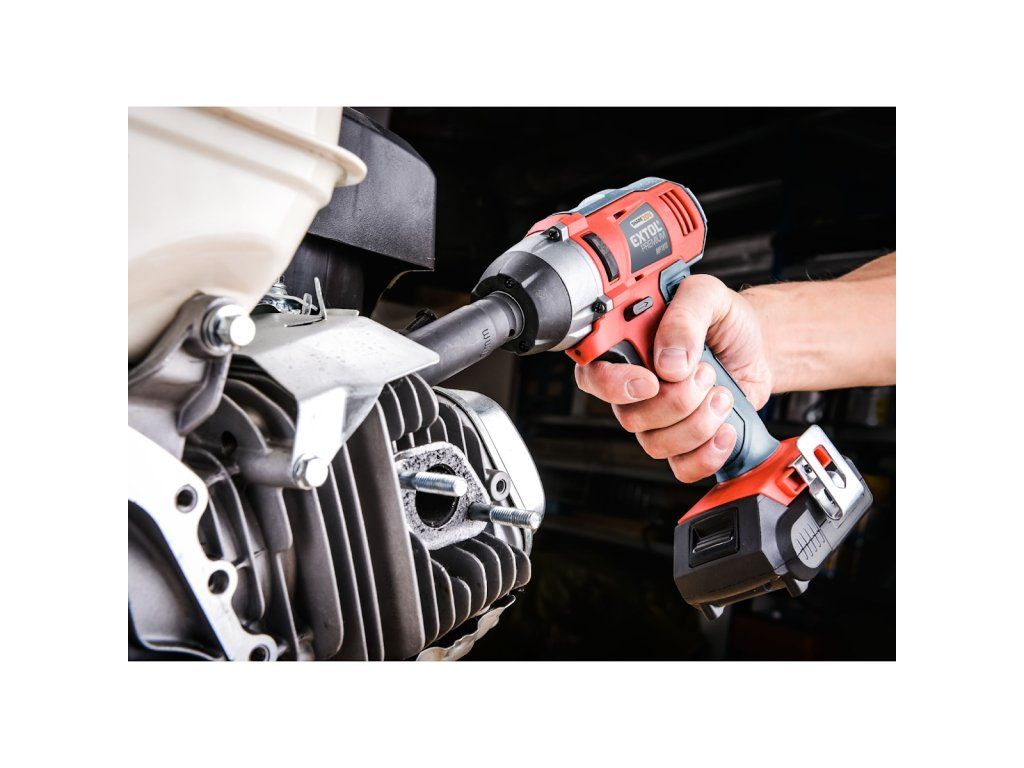 Impactul ușor și puternic fără fir, cu un cuplu maxim ridicat de 180 Nm, vă oferă puterea de care aveți nevoie pentru a finaliza o gamă largă de operațiuni de strângere - strângerea și slăbirea șuruburilor. Cuplul de impact crește forța cheii la înșurubare, reducând în același timp consumul bateriei. Prin urmare, atunci când înșurubați, este mult mai eficient decât un burghiu acumulator și, de asemenea, înșurubează mai multe șuruburi pe o singură încărcare a bateriei. Cutia de viteze integral metalică asigură o funcționare ireproșabilă chiar și la sarcini grele și contribuie la o mai bună disipare a căldurii generate în timpul lucrului. Pentru o muncă normală, sunt suficiente una sau două baterii de 2.000 mAh, pe care le puteți încărca rapid într-un încărcător rapid, pentru o muncă mai solicitantă sau mai lungă vă recomandăm baterii mai mari, cu o capacitate de 4.000 mAh. Bateria poate fi utilizată în toate tipurile de instrumente din seria EXTOL SHARE20V. Datorită tehnologiei Li-ion utilizate, este posibil să o reîncărcați în orice moment fără a-i reduce capacitatea. Bateria Li-ion pierde energie foarte lent din cauza auto-descărcării și durează mult timp încărcată și gata de utilizare.