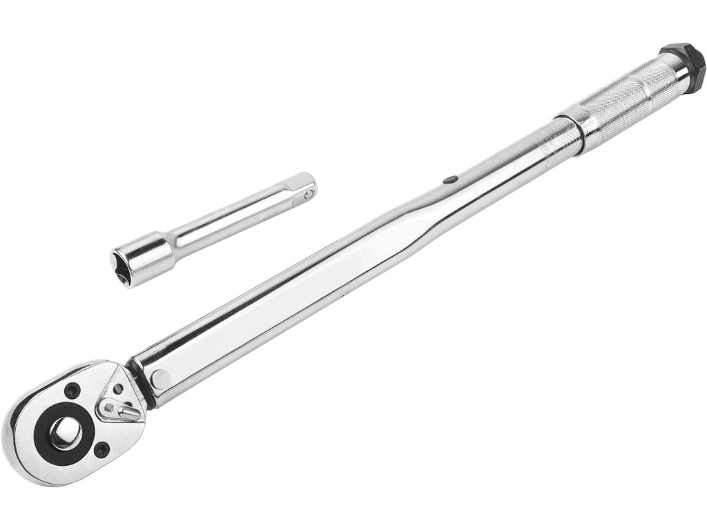 Abatere ± 4%. Domeniul cuplului de forţă: 40 – 210 Nm. Dimensiune cheie 470 × 50 mm. Pachetul include un prelungitor de 1/2" × 125 mm. Ambalat într-o cutie de plastic.