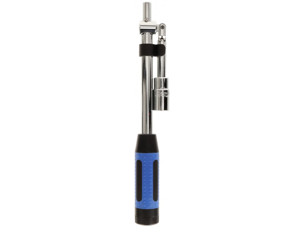 Cheia telescopică pentru roți este un instrument practic pentru schimbarea rapidă a anvelopelor, atât acasă, cât și în timpul călătoriilor. Datorită construcției pliabile, se potrivește ușor în spațiile înguste, de exemplu lângă roata de rezervă din portbagaj sau într-o trusă mai mică de scule, ocupând foarte puțin loc. Extensia telescopică oferă un braț de pârghie mai mare pentru desfacerea și strângerea confortabilă a piulițelor fără efort inutil. Cheia este fabricată din oțel carbon durabil, ceea ce garantează o durată lungă de viață și fiabilitate în utilizarea zilnică.