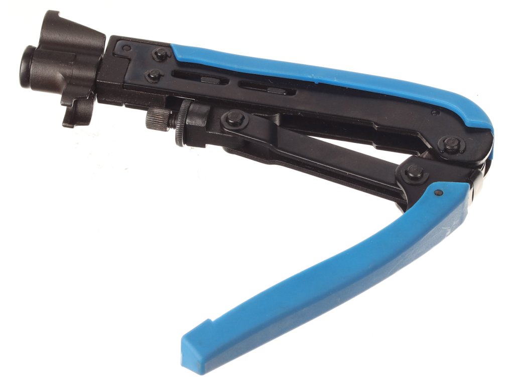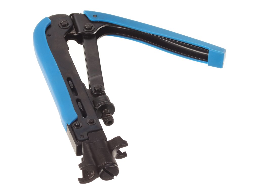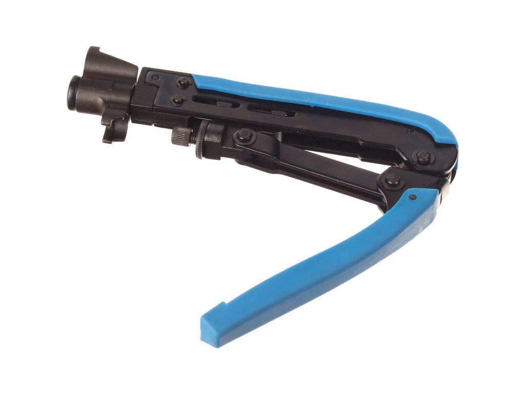 Instrument de compresie prin cablu pentru conector coaxial F. Compatibil cu conectori de compresie de tip RG11, RG59 și RG6. Reglabil pentru conectoare de diferite lungimi, material: oțel/plastic. Conectare permanentă fără a vă face griji în privința slăbirii cablului în conector.