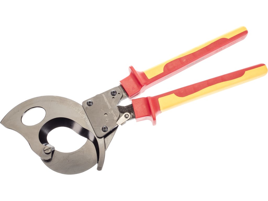Clește de calitate izolat, cu blocare, din oțel CRV, destinat dezizolării conductorilor cu diametrul max. 52 mm și secțiune 380 mm2. Cleștele are fălcile brunate și mânerele color, dimensiunile 380 × 90 × 32 mm. Certificat VDE.