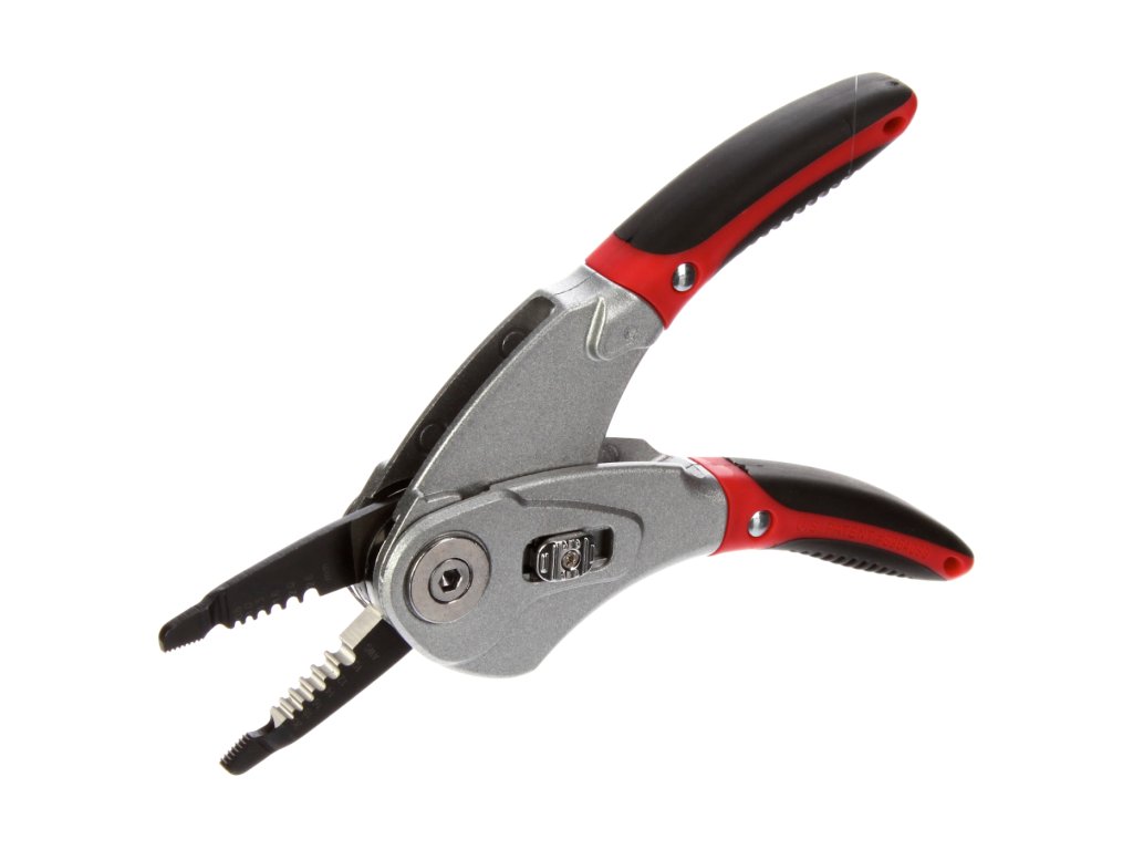 Clește multifuncțional pentru tăierea și dezizolarea cablurilor. Potrivit pentru cabluri cu diametru 0,8; 1,0; 1,3; 1,6; 2,0; 2,6 mm. Corp din aluminiu, mâner din cauciuc, lame din inox.