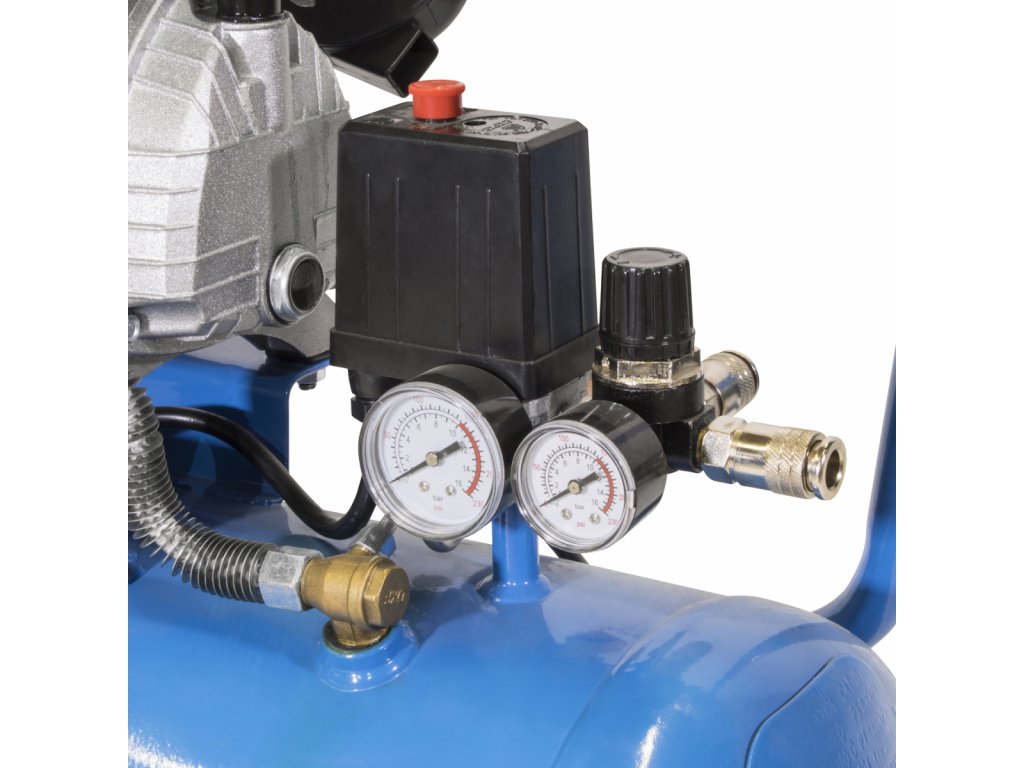 Echipament: 2 manometre, 2 prize de aer comprimat (cuplaje rapide metalice), comutator de presiune, reductor de presiune, supapă de reducere a presiunii de siguranță, supapă de verificare, manometru de ulei, filtre de aer (2), cablu de rețea de 1,8 m H07 RN-F.