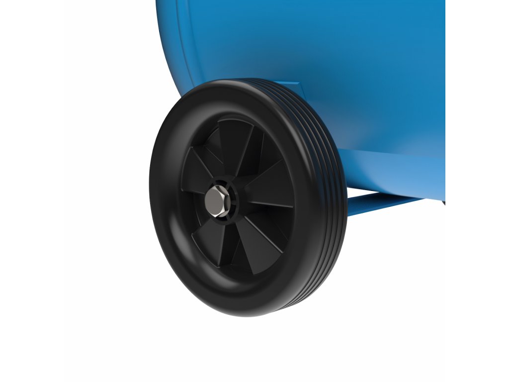 Vas sub presiune: 50 l, supapă de scurgere a condensului, cotiere cu picioare de cauciuc (2), mâner de transport, roți din plastic pentru o trecere ușoară.