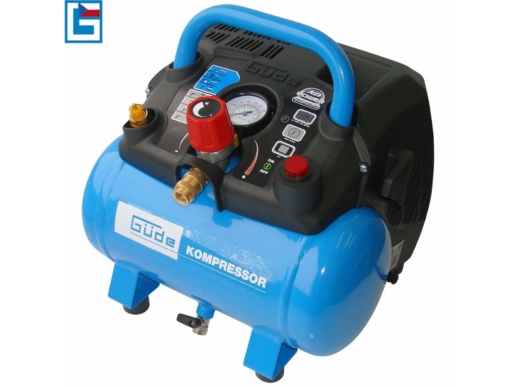 Compresor portabil fără ulei, proiectat pentru lucrări de service (→ suflare a murdăriei de la computere/ linii electrice etc.) sau pentru uz casnic (→ umplerea bilelor / anvelopelor, înjunghiere, pulverizarea aerografului etc.).