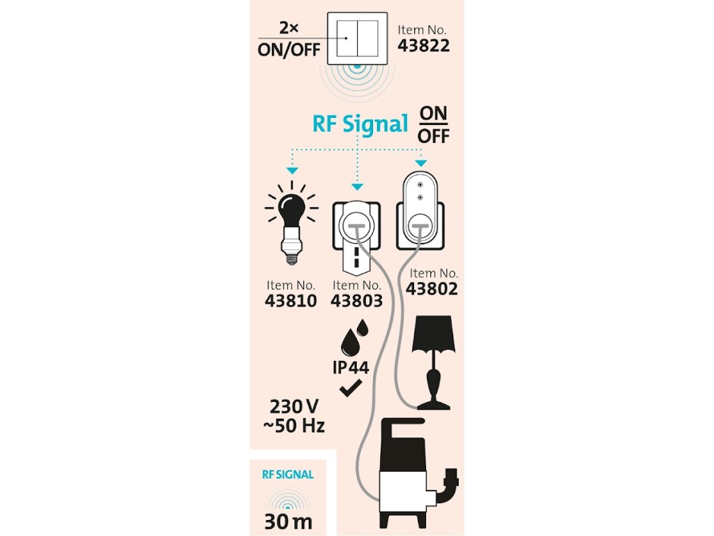 - Caracteristici: Oprire/pornire, capacitatea de a asocia fiecare canal cu mai multe dispozitive, memorie persistentă, baterie de 433.92mHz, 12-în-23A (inclus)