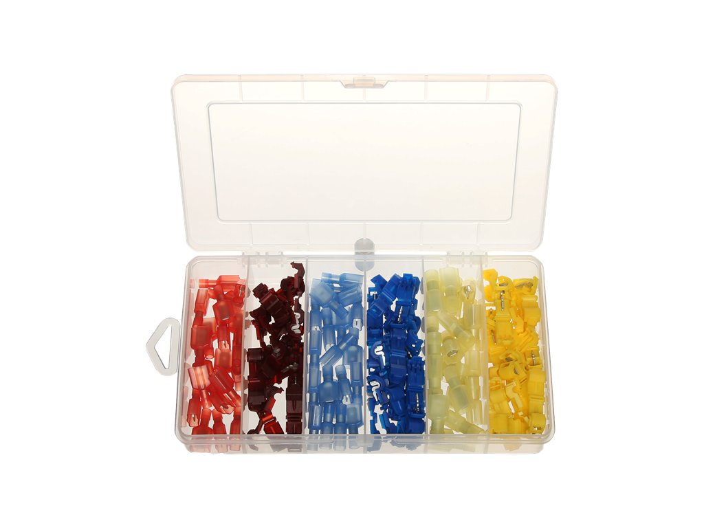 Conține conectoare color cu lamă pentru racordarea conductorului fără necesitatea întreruperii acestuia. Asigură un contact și racord fiabil la instalația electrică existentă în autovehicul sau motocicletă. Conectoare de racordare pentru conductori cu secțiune de 0,5 – 1 mm²; 1 – 2,5 mm² și 4 mm²; conectoare de bifurcare pentru conductori cu secțiunea de 0,5 – 1,5 mm²; 1,5 – 2,5 mm² și 4 – 6 mm².
