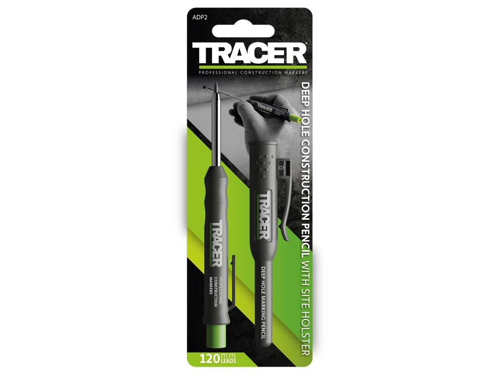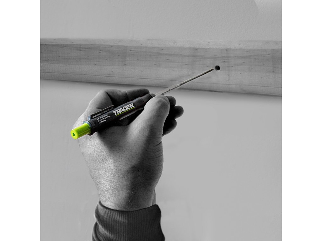 Creionul versatil pentru tâmplărie și zidărie de la marca britanică Tracer este singurul creion pe care veți dori să îl purtați cu dvs. Poate scrie pe majoritatea suprafețelor. Datorită tijelor extensibile și înlocuibile de 120 mm lungime, puteți marca orice găuri înguste și adânci cu creionul TRACER. Stick-ul poate fi scos cu o singură apăsare. Capacul cu cârlig servește și ca husă, datorită căreia poți manipula creionul rapid și ușor.
