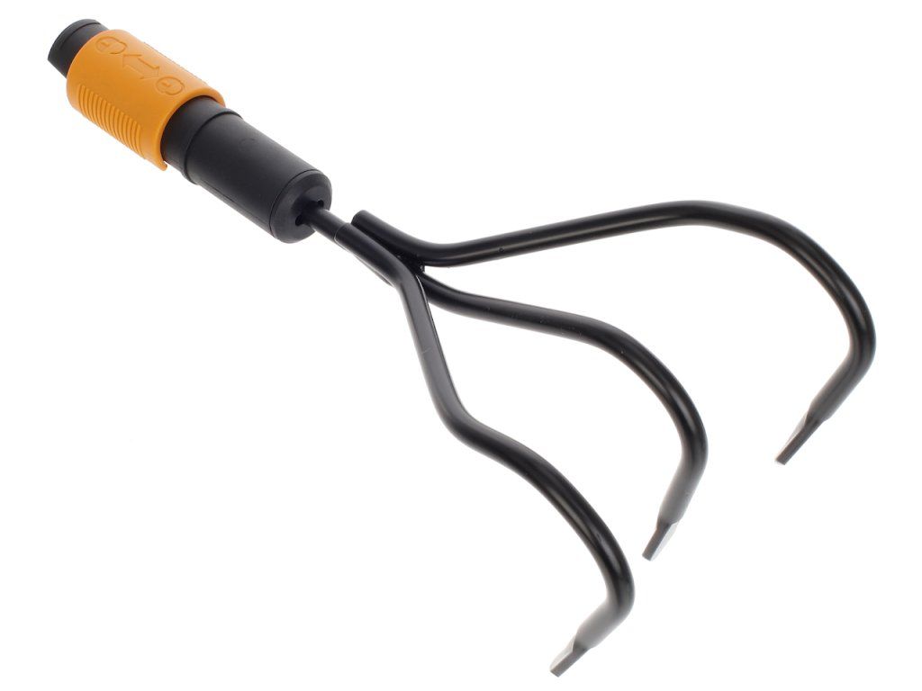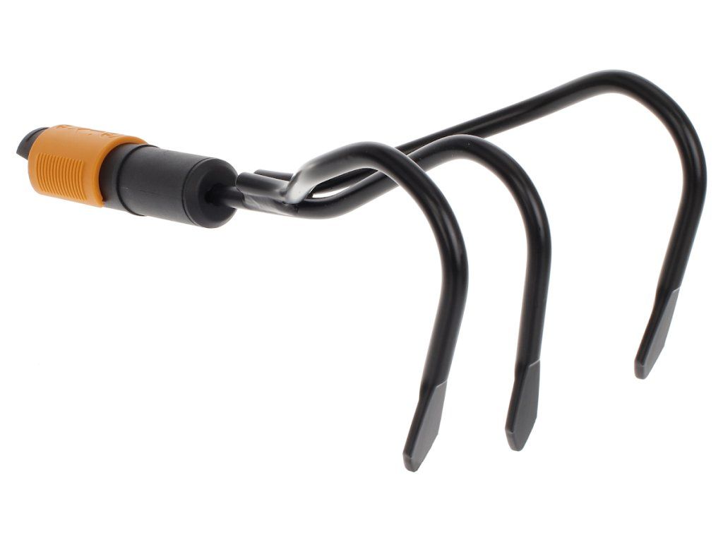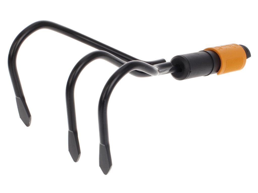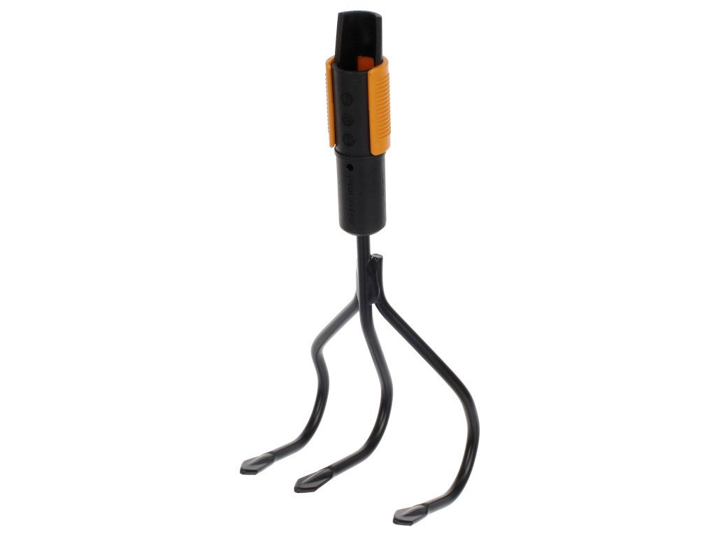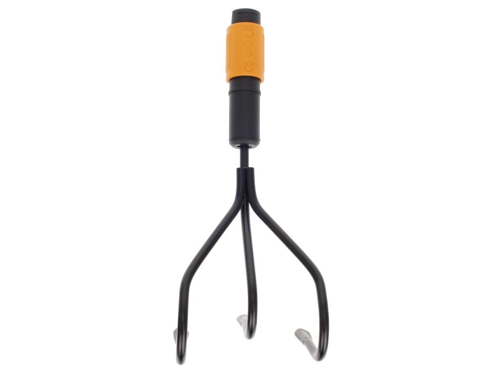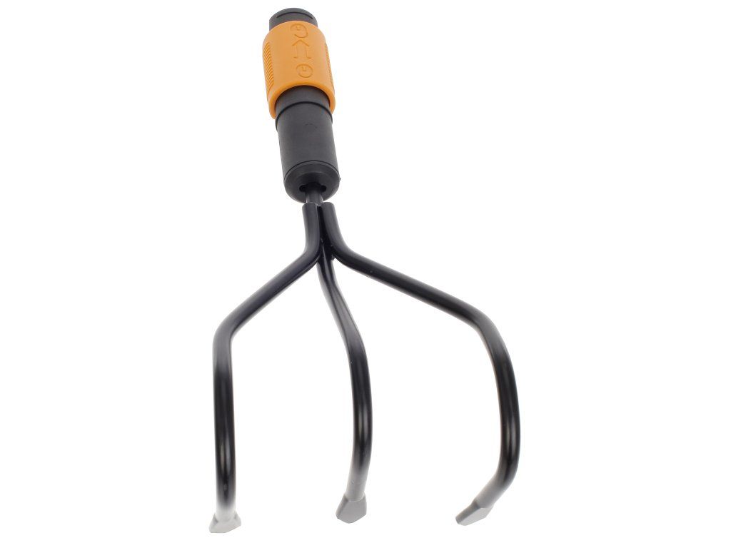 Cultivatorul este potrivit pentru cultivarea, aerarea solului și pentru pregătirea paturilor de flori. Vârfurile sunt realizate din oțel carbon călit. Sistemul QuikFit vă permite să combinați diverse unelte de grădină cu un singur mâner. Maner recomandat: L. Latime: 125 mm, lungime: 225 mm, greutate: 233 g. Numar fiskars original: 136511