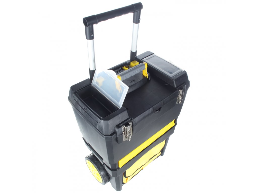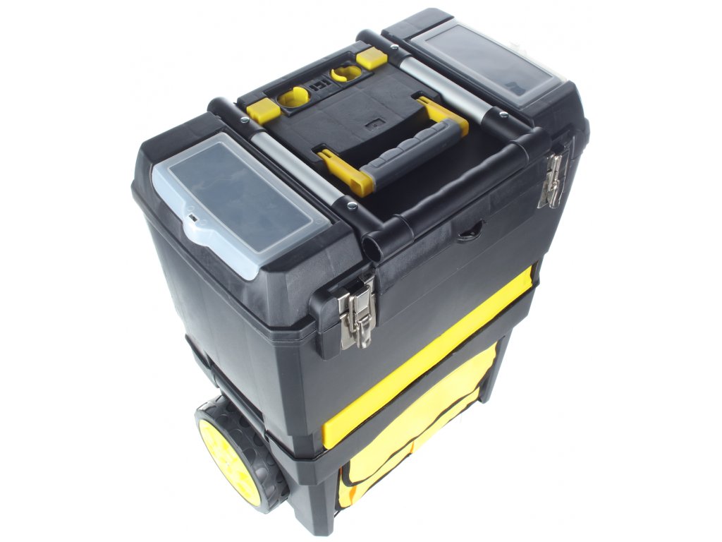 Cutia este formată din două părţi separate, detaşabile. Partea superioară este o cutie de scule din plastic, blocabilă, cu un mâner cu balamale. Sub ea se află un recipient rotativ, circular, care oferă acces uşor la elementele de fixare depozitate. Partea inferioară are geantă de scule din pânză. Cutia este dotată cu roţi de Ø 148 mm şi mâner telescopic pentru un transport uşor. Capacitatea totală de încărcare este de 20 kg. Dimensiuni totale 470 × 270 × 630 mm.
