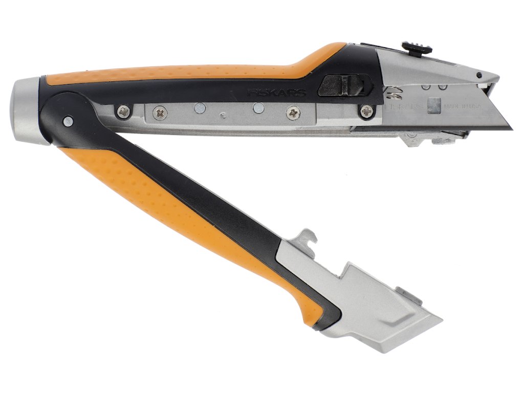 Cuțitul universal este potrivit pentru gips-carton. Acesta include două dintre cele mai frecvent utilizate instrumente de gips-carton: un cuțit universal și un ferăstrău pentru tăierea ușoară a gips-cartonului. Ambele lame se află la același capăt al sculei și se blochează în poziția lor pentru un plus de siguranță. Manerul este metalic pentru un echilibru optim si durabilitate, la final este realizat din metal intarit, ofera rezistenta fiabila la socuri si caderi. Are o revistă pentru depozitarea a 3 lame. Inaltime: 30 mm, lungime: 260 mm, latime: 109 mm, greutate: 234 g. Garantie: 5 ani.