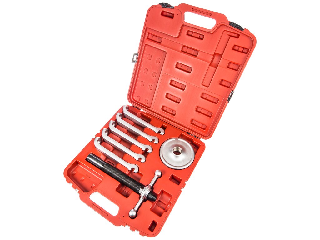 Extractor de calitate cu cinci gheare pentru butucii roților la vehiculele personale, de marfă și toate vehicule mari cu diametrul butucului până la 305 mm. Fixare rapidă și ușoară de butucul vehiculului, mânerul permite utilizarea forței de impact pentru îndepărtarea mai ușoară a butucului ruginit. Mărimea șurubului 22 mm, materialul extractorului CrM. Ambalare în geantă din plastic.