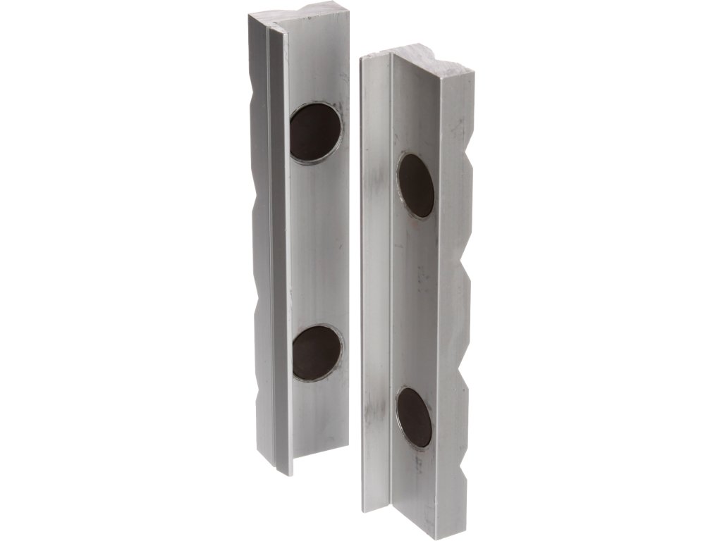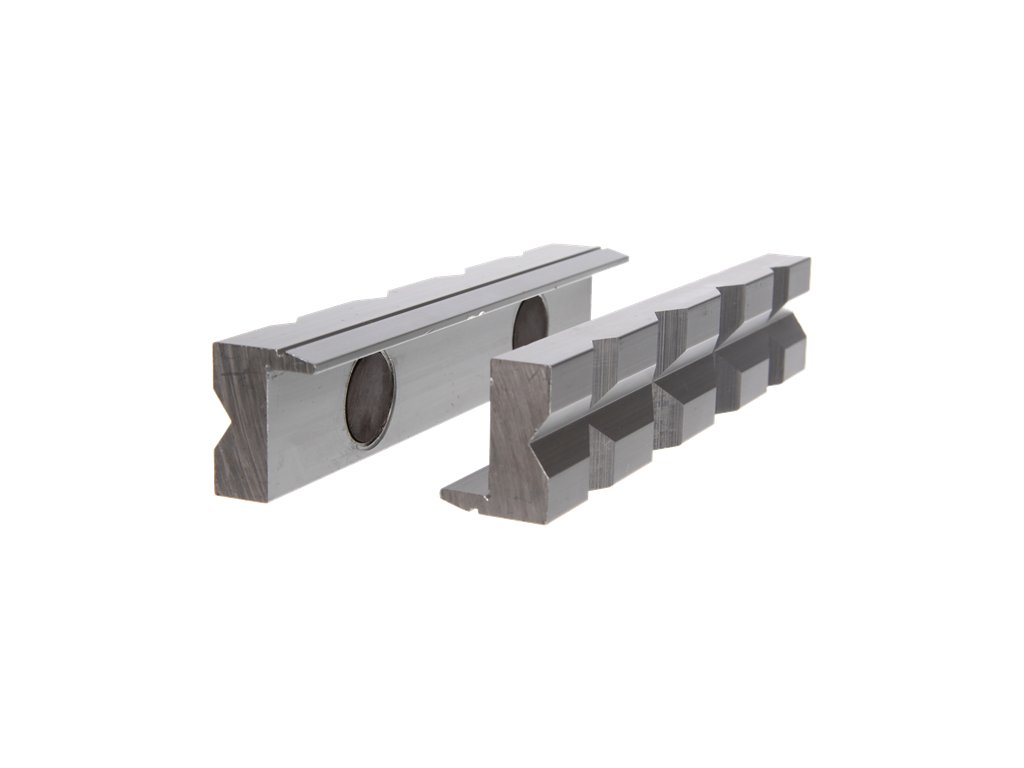 Execuție din aliaj dur de aluminiu cu magneți permanenți care fixează în siguranță produsul pe menghină. Conceput pentru protejarea piesei de prelucrat de deteriorarea nedorită de bacurile menghinelor.