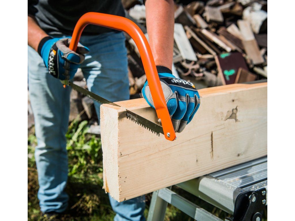 Ferăstrău manual pentru lemn uscat are dinți durificați triplu ascuțiți, căliți prin inducție, pentru o tăiere rapidă și precisă în ambele sensuri, cu o durabilitate lungă. Profil elipsoidal al ramei mărește rigiditatea acestuia. Tensionare confortabilă a pânzei cu posibilitatea înlocuirii acestuia.