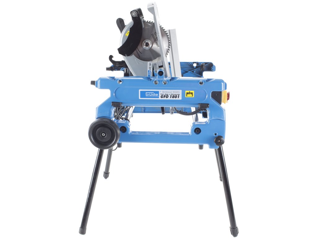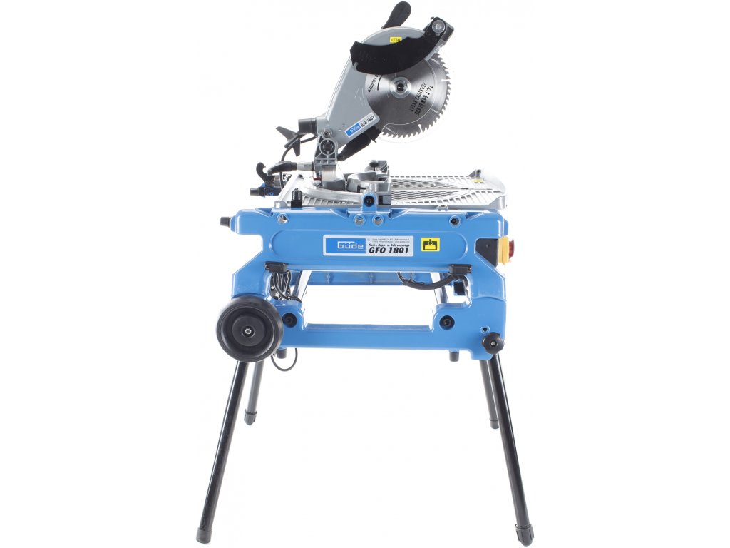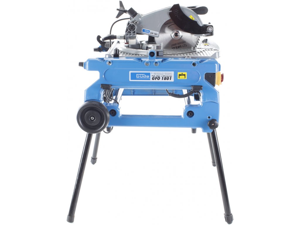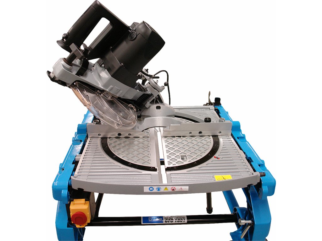 Ferăstrău multifuncțional cu masă, pentru debitare/tăiere sub unghi cu masă rotativă cu două poziții (±180°), destinată efectuării tăieturilor obișnuite/sub unghi/combinate în lemn moale/tare, profiluri din lemn, laminat sat plastic în condiții de atelier de tâmplărie, construcții etc. Schimbare simplă a tipului ferăstrăului (de debitat de masă) prin rotirea mesei în poziția opusă, reglare continuă a înclinării brațului de ferăstrău 0° – 45° cu blocare, masă de lucru rotitoare (± 45°) cu gradație/rastru/șurub de aretare a unghiului, schimbare ușoară a pânzei circulare datorită blocajului. Electromotor performant 1.800 W, pânză circulară Ø 250 mm cu dinți din carburi aliate, mâner cu formă ergonomică, apărătoare a pânzei circulare, masa de lucru (558 × 500 mm) din aliaj ușor de aluminiu, clemă pentru fixarea materialului tăiat, limitator paralel/unghiular, cadru masiv din fontă cu roți de transport pentru înlesnirea manipulării, picioare de susținere rabatabile.