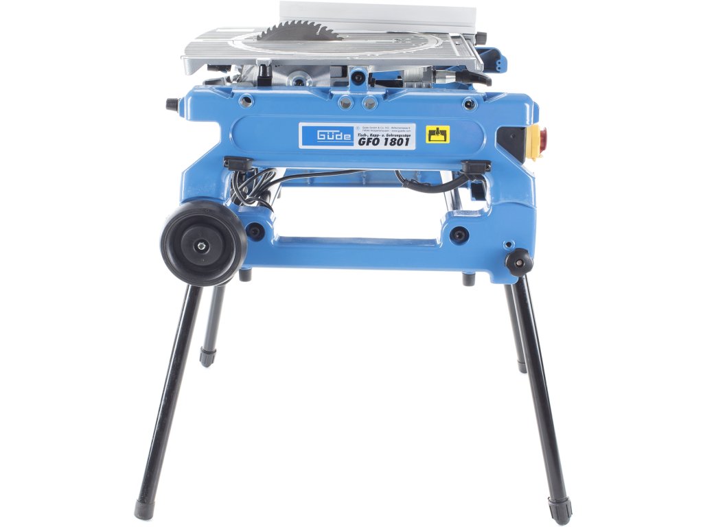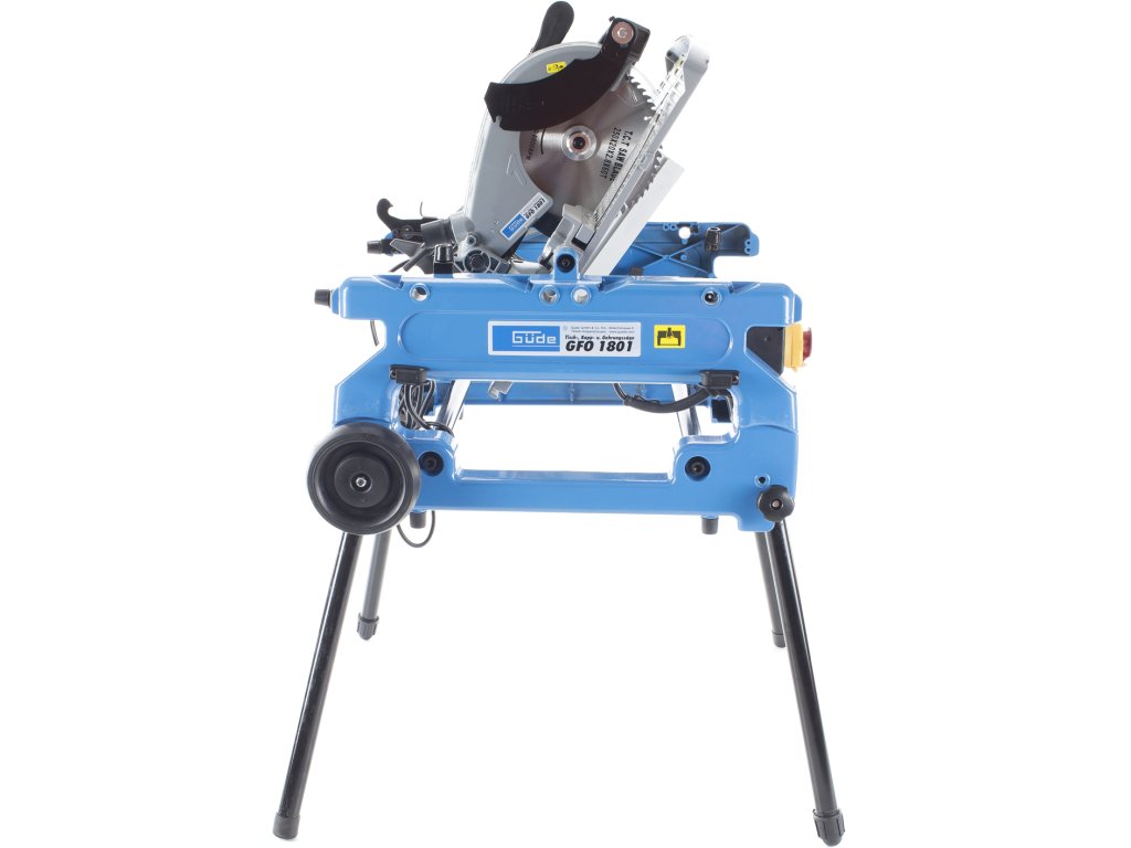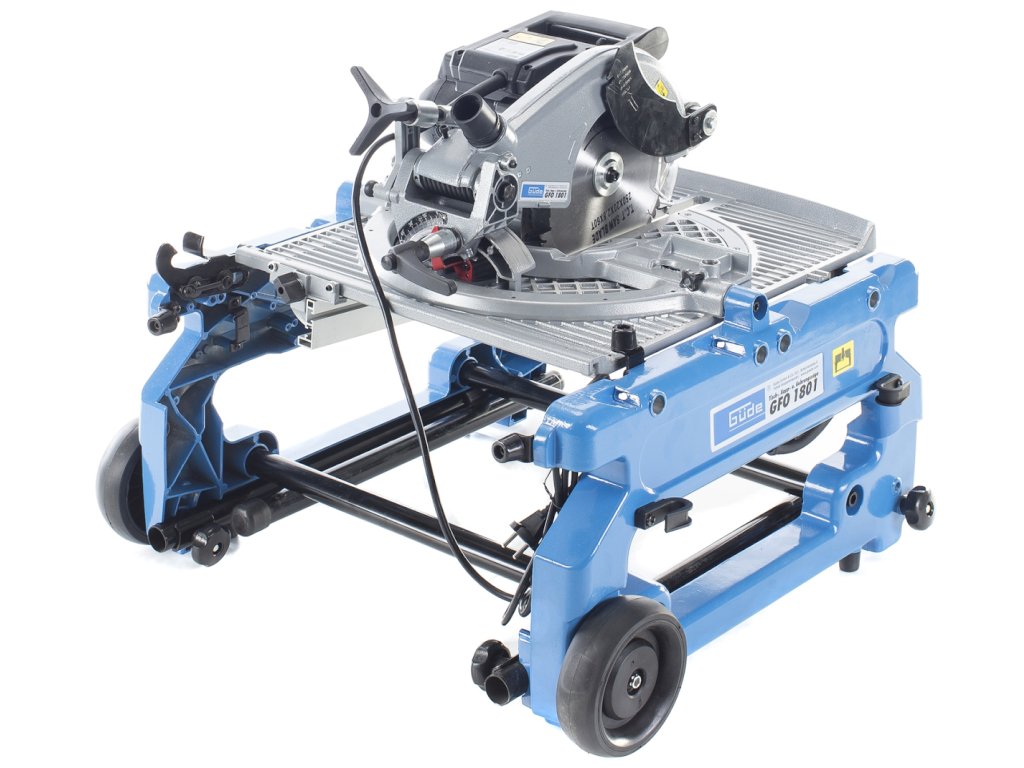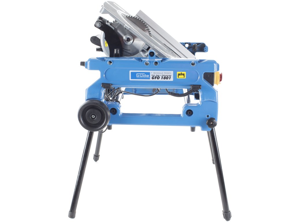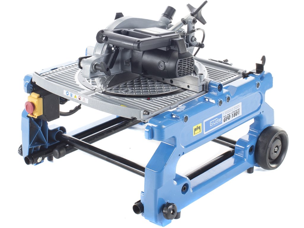 Ferăstrău multifuncțional cu masă, pentru debitare/tăiere sub unghi cu masă rotativă cu două poziții (±180°), destinată efectuării tăieturilor obișnuite/sub unghi/combinate în lemn moale/tare, profiluri din lemn, laminat sat plastic în condiții de atelier de tâmplărie, construcții etc. Schimbare simplă a tipului ferăstrăului (de debitat de masă) prin rotirea mesei în poziția opusă, reglare continuă a înclinării brațului de ferăstrău 0° – 45° cu blocare, masă de lucru rotitoare (± 45°) cu gradație/rastru/șurub de aretare a unghiului, schimbare ușoară a pânzei circulare datorită blocajului. Electromotor performant 1.800 W, pânză circulară Ø 250 mm cu dinți din carburi aliate, mâner cu formă ergonomică, apărătoare a pânzei circulare, masa de lucru (558 × 500 mm) din aliaj ușor de aluminiu, clemă pentru fixarea materialului tăiat, limitator paralel/unghiular, cadru masiv din fontă cu roți de transport pentru înlesnirea manipulării, picioare de susținere rabatabile.