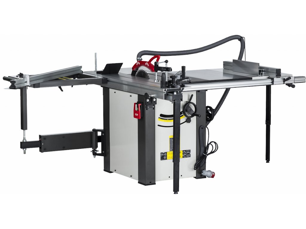 Fierăstrău circular de masă cu incizor 1 600 mm, 400 V este o mașină robustă și puternică, destinată tăierii precise a materialelor din lemn. Datorită combinației dintre discul principal și discul incizor, obține tăieturi curate și precise fără bavuri, fiind ideal pentru lucrul cu plăci laminate și alte materiale sensibile.