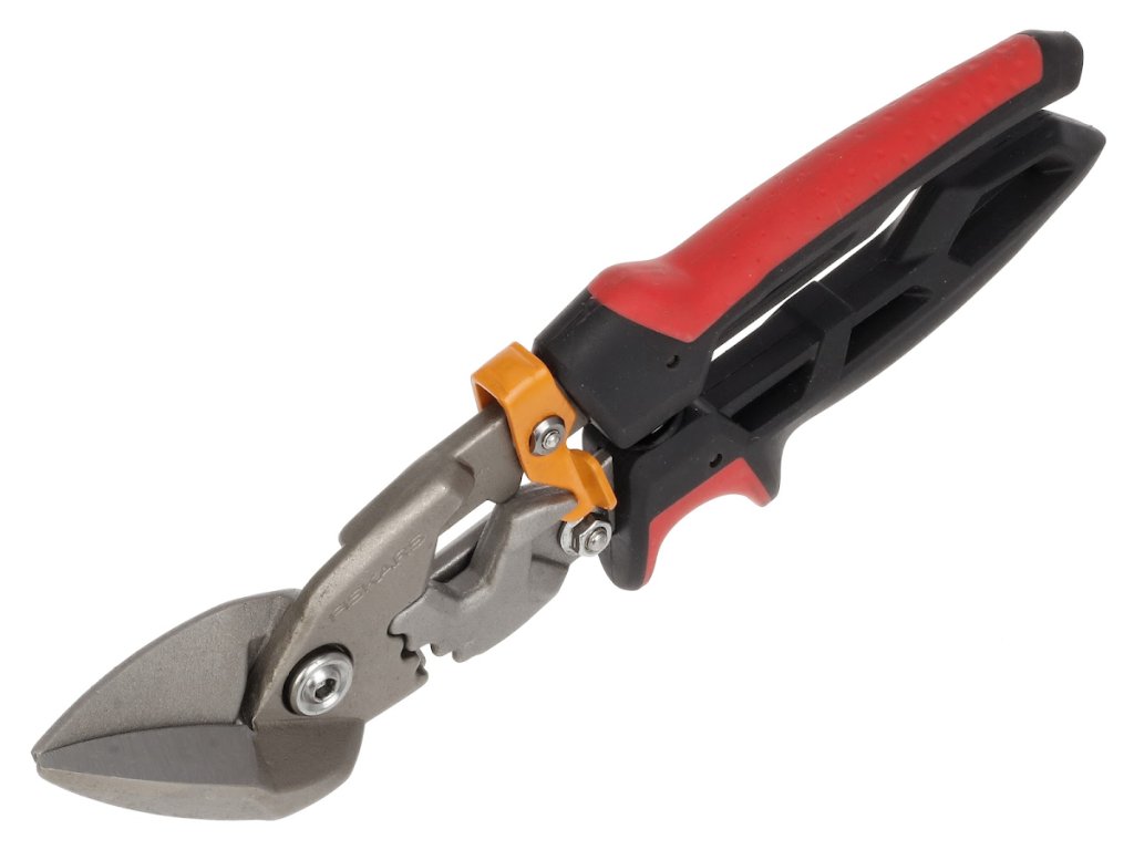 Foarfece de viteze pentru tablă, offset pentru tăierea stângă. Ele sunt ideale pentru tăierea unei varietăți de materiale durabile, inclusiv tablă, țevi, colțuri din gips-carton, șuruburi metalice, plinte, soffits, plăci cornișă, jgheaburi, jgheaburi și alte materiale. Au lame cu tehnologie patentată PowerGear - un sistem de transmisie care oferă cu 40% mai multă putere, în special în cea mai grea parte a tăieturii. Lamele offset permit tăierea prin centrul plăcii, în timp ce mâna este sigură departe de metalul ascuțit. Capacitate de forfecare: oțel laminat la rece cu grosimea de până la 1.214 mm sau oțel inoxidabil de până la 0.644 mm grosime. Lungimea tăieturii: 13,97 cm. Inaltime: 35 mm, lungime: 295 mm, latime: 105 mm, greutate: 450 g. Garantie: 5 ani.