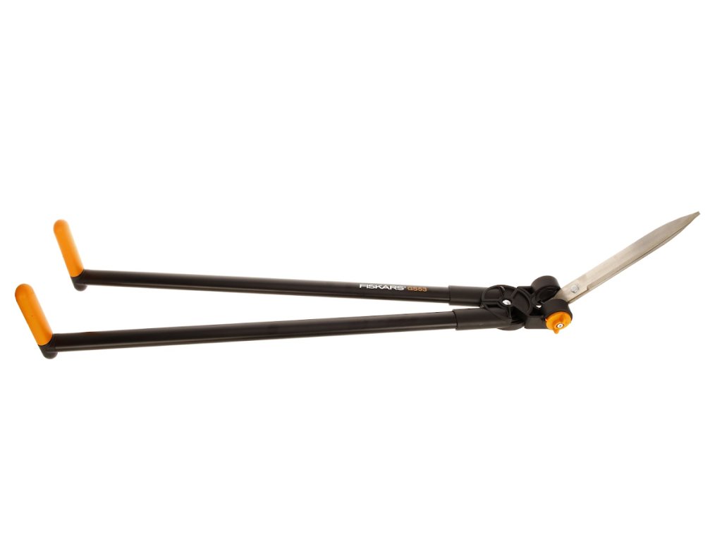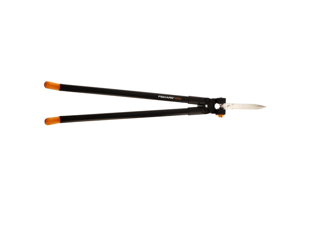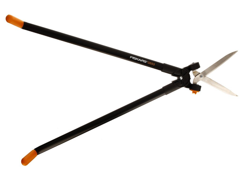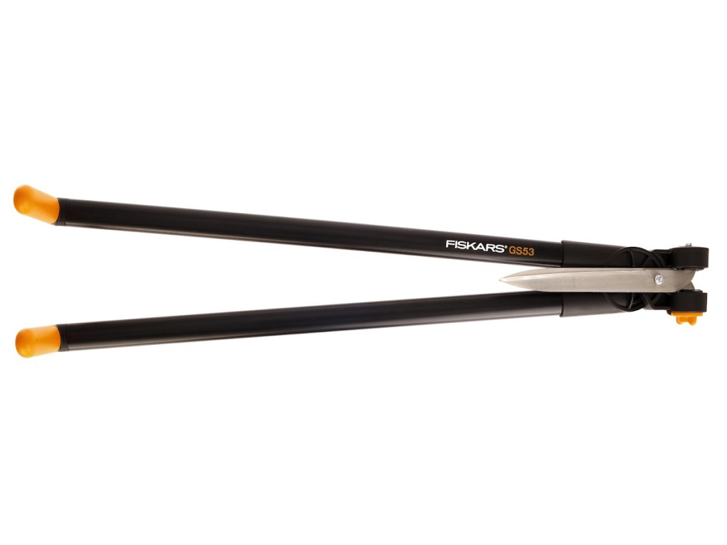 Foarfece proiectate progresiv cu greutate redusă. Pentru tăierea ierbii, gardurilor vii și a tufișurilor. Înclinarea capului de tăiere poate fi reglată la 270°. Intervalul de tăiere este de până la 2,5 m. Lungime: 930 mm. Greutate: 1300 g. Lungimea lamei: 220 mm. Lungimea manerului: 160 mm. Numarul original Fiskars: 113710. Denumire: GS53