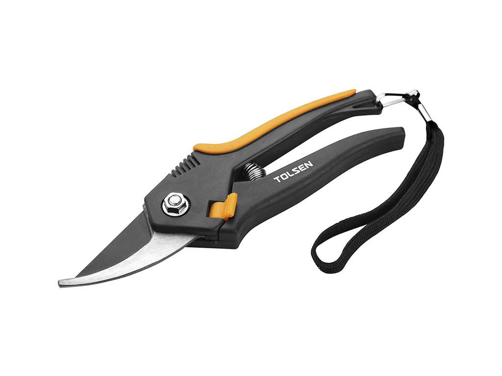 Foarfecă de grădină, de înaltă calitate, pentru curăţarea plantelor, tufelor şi copacilor. Mânere din plastic. Muchii acoperite cu teflon. Este prevăzută cu un cordon pentru a o atârna de mână.