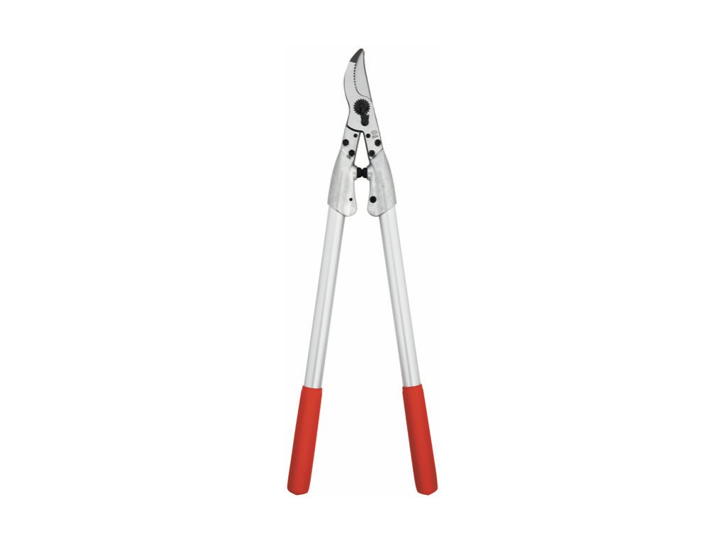 Foarfece de grădină cu două mâini Felco 200A-60, tăiere până la 35 mm în diametru, lungime a foarfecelor 60 cm. Foarfecele de grădină cu două mâini sunt echipate cu o contra-lamă zimțată pentru a prinde creanga.