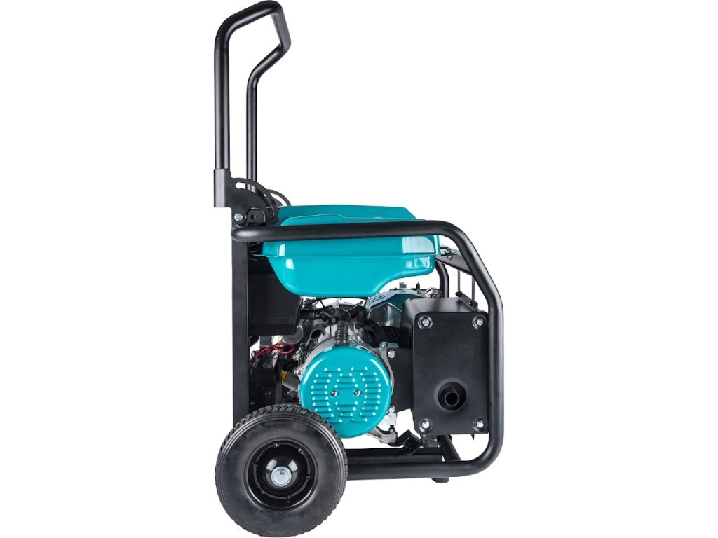 Generatorul este proiectat pentru a fi utilizat în lucrările de construcție și asamblare, dar și ca sursă de rezervă de energie electrică pentru centrele de servicii mobile și în scopuri recreative. Mașina este echipată cu o unitate AVR care echilibrează tensiunea de ieșire. Prin urmare, acestea pot fi utilizate pentru alimentarea dispozitivelor electronice fine, cu condiția respectării procedurii corecte de aplicare. Manerul pliabil si rotile robuste din cauciuc incluse in livrare usureaza transportul generatorului la locul de nevoie intr-un mod similar cu bagajele cu maner si roti. Unitatea centrală este echipată cu trei prize 16A și una 32A cu 230 V, care vă permit să conectați atât aparatele obișnuite, cât și aparatele cu consum ridicat (până la 7,5k W), cum ar fi invertoare de sudură, ferăstraie de masă, compresoare mari... De asemenea, este echipat cu o priză dc de 12 V/8.3A, iar accesoriile includ și cabluri de încărcare, datorită cărora generatorul poate fi încărcat 12 într-o baterie auto. Datorită pornirii electrice, puteți porni și opri unitatea centrală apăsând un buton cu un deget. Acest început este asigurat de o baterie fără întreținere AGM, cu o durată lungă de viață reîncărcată de funcționarea generatorului de energie. Pentru o lucrare mai plăcută în apropierea generatorului de energie, l-am echipat cu un nou tip de evacuare cu zgomot mai mic și sunet mai plăcut.