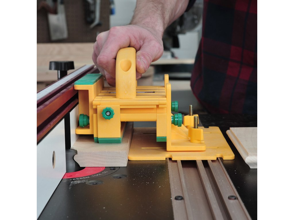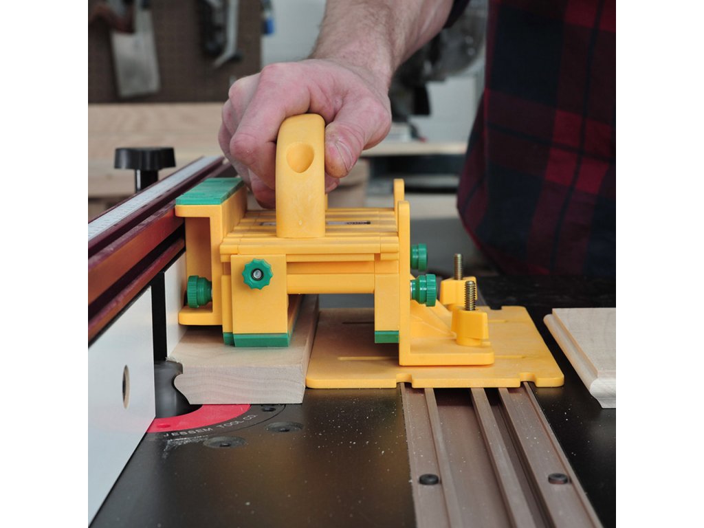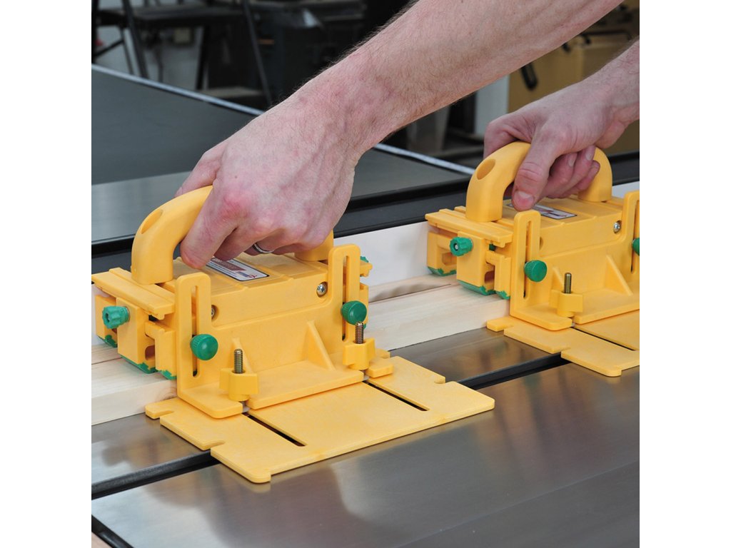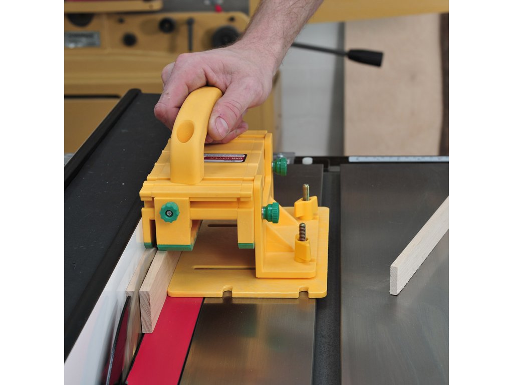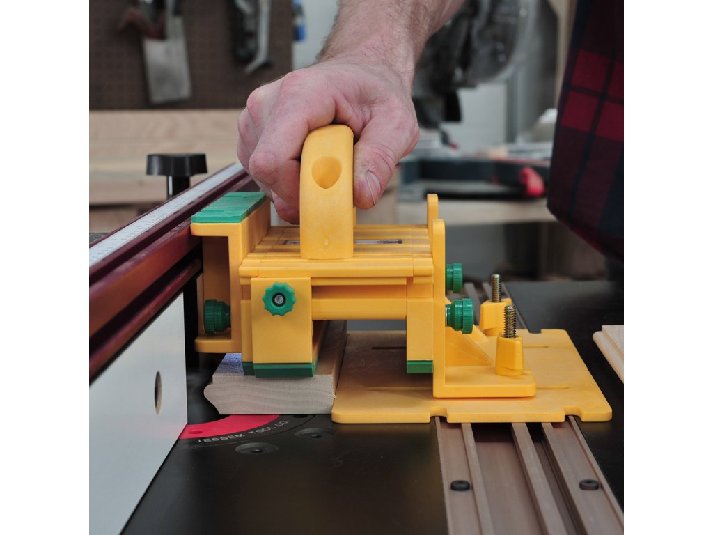 Dispozitiv de glisare cu placă stabilizatoare pentru utilizare cu ferăstraie de masă, mese de frezat, ferăstrău cu bandă și freze de tâmplărie. Placa stabilizatoare va oferi un control și mai mare asupra produsului prelucrat. Blocul de împingere GRR-RIPPER® 3D este proiectat pentru a vă permite să efectuați cele mai precise tăieturi, protejându-vă în același timp mâinile. Faceți tăieturi dificile cu ușurință și preveniți recul ca niciodată.