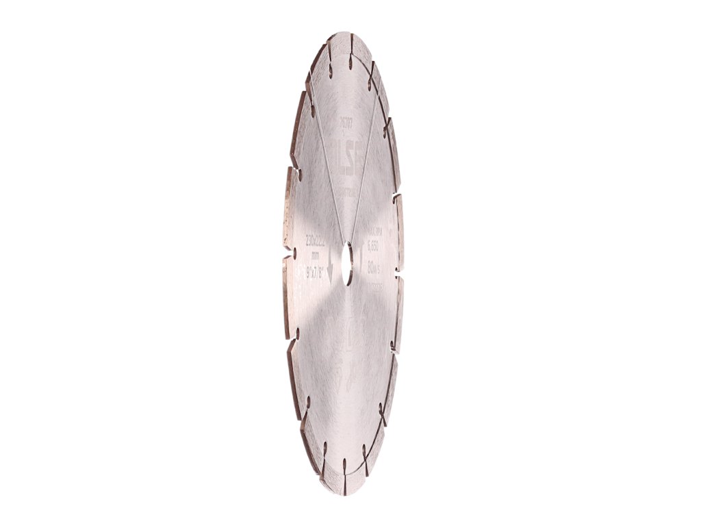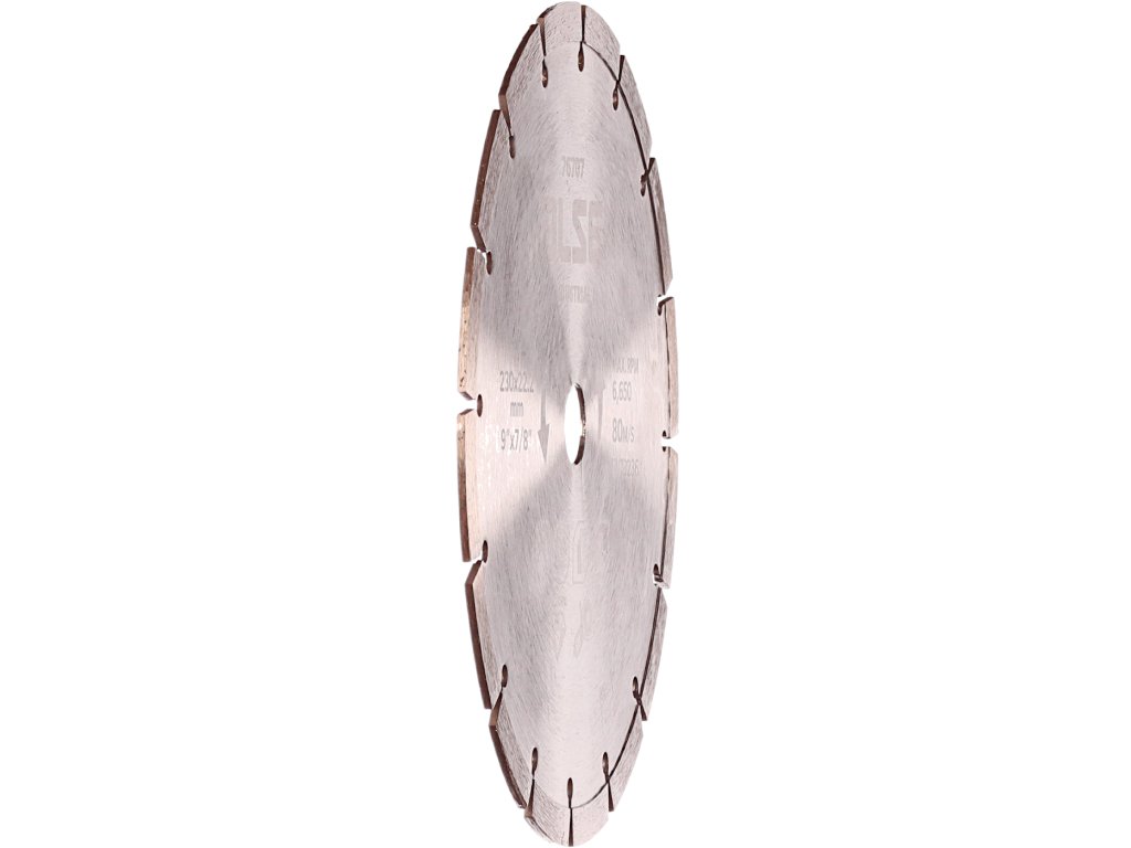 Lamă diamantată segmentată de înaltă calitate concepută pentru tăierea uscată a zidăriei, cărămizilor, acoperişurilor şi altor materiale de construcţie. Înălţime segment de 10 mm. Turaţie maximă de 6 650 rot/min.