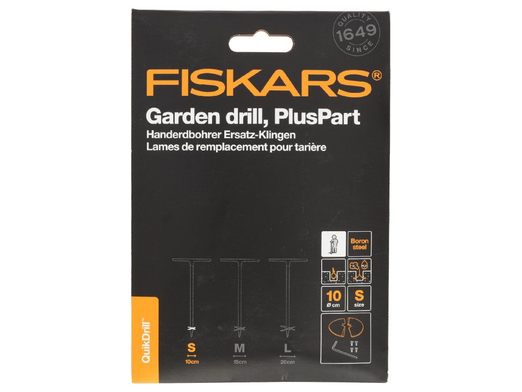 Lamele interschimbabile Fiskars QuikDrill™ pentru exercițiile la sol QuikDrill™ pentru forarea precisă la adâncime a solului, permițând efectuarea diferitelor lucrări de grădină cu un singur burghiu. Lamele pot fi conectate la orice mâner™ Fiskars QuikDrill. Diametrul lamei 10 cm. Numărul original Fiskars: 134717.