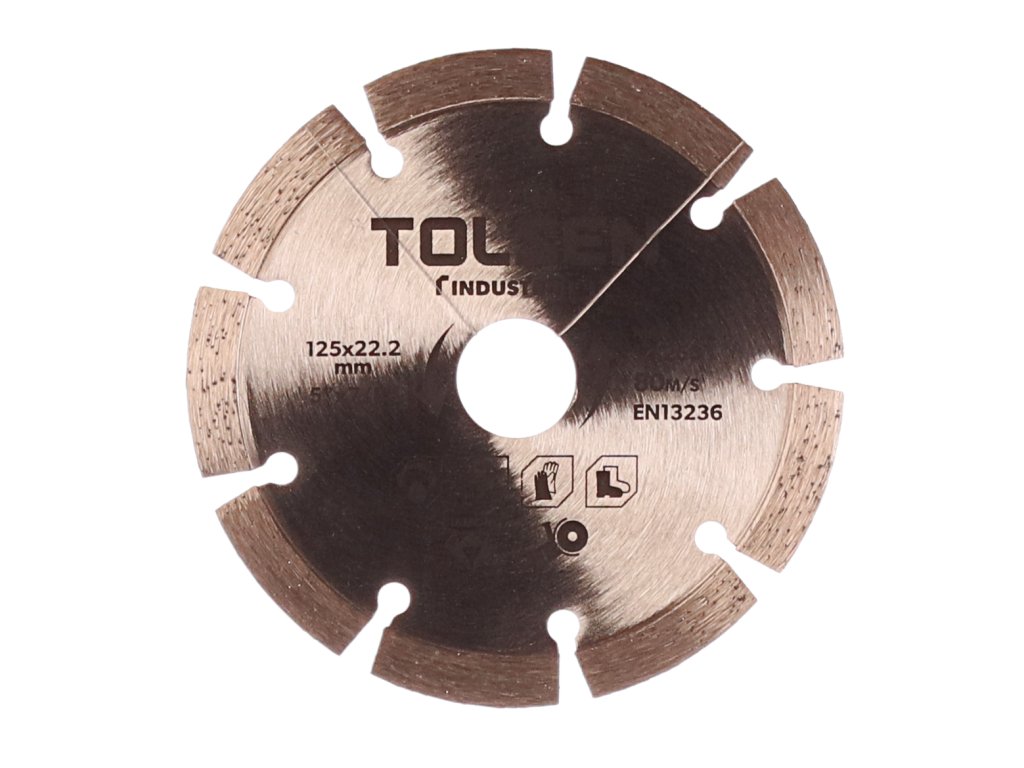 Lamă diamantată segmentată de înaltă calitate concepută pentru tăierea uscată a zidăriei, cărămizilor, acoperişurilor şi altor materiale de construcţie. Înălţime segment de 10 mm. Turaţie maximă de 12 250 rot/min.