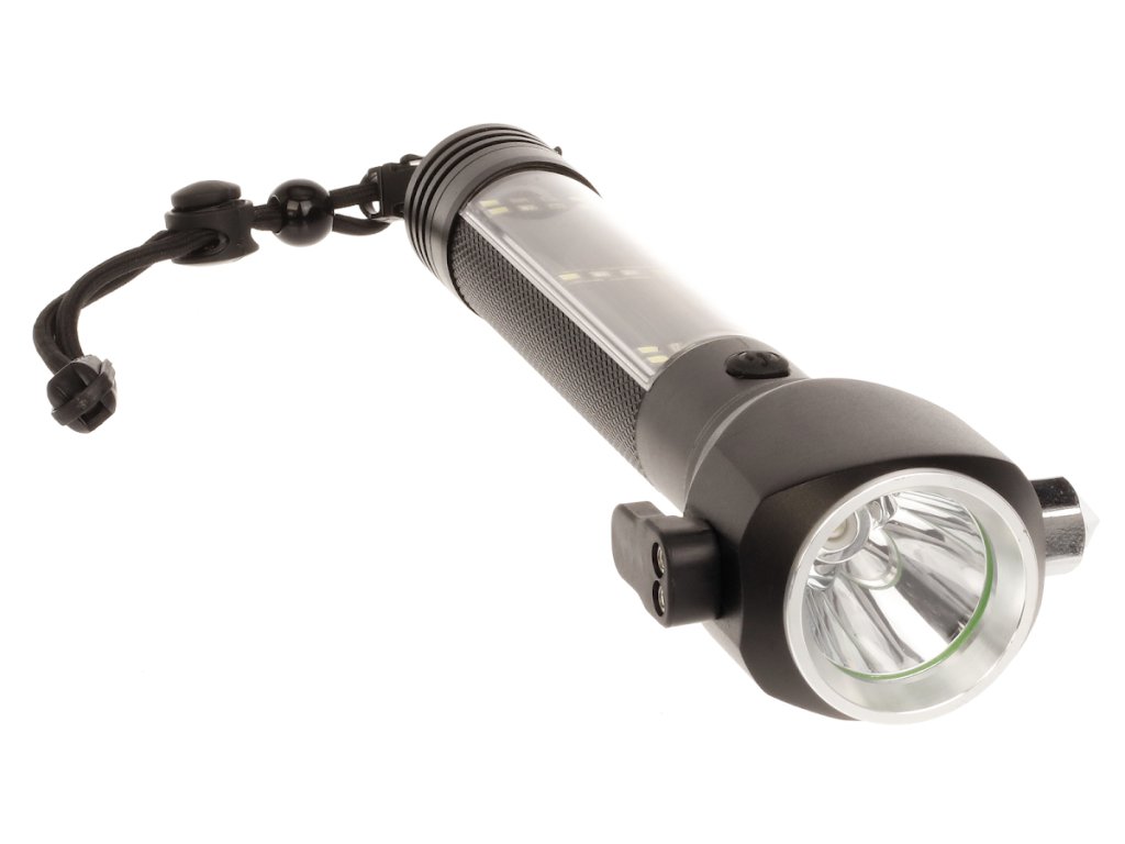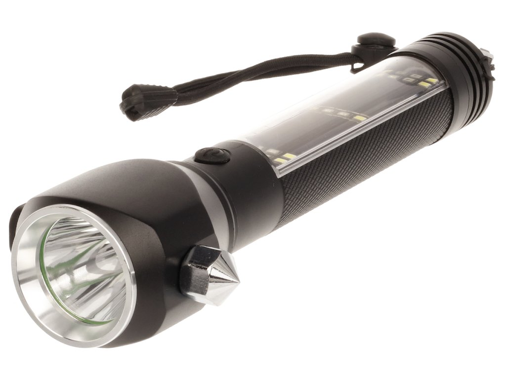Lampă LED portabilă cu acumulator CREE XPE 3 W SMD Multi – un ajutor universal pentru mașină, acasă și în călătorii. Oferă combinația dintre iluminarea punctuală și cea de suprafață cu autonomie extinsă și funcționează totodată ca instrument de salvare practic. Cu magnet integrat, ciocan de siguranță, cuțit pentru centuri și busolă, este ideală pentru situații de urgență. Se poate încărca prin USB sau cu ajutorul panoului solar încorporat – perfectă pentru folosire în afara civilizației.