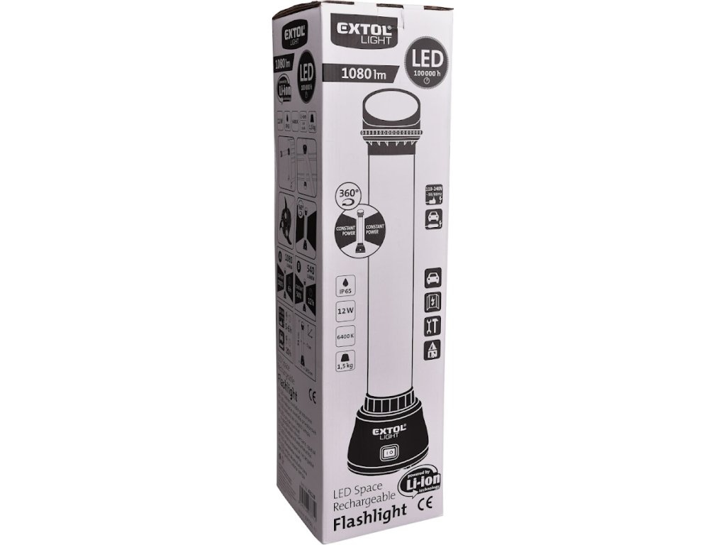 Lumina de încărcare spațială este o sursă de lumină plăcută lăptos, non-orbitor. Este o lumină tehnică pentru utilizarea, de exemplu, în ateliere. Dimensiunea și emisia de lumină în intervalul de 360° sunt proiectate pentru plasarea în spațiu. În lumină, este posibil să se adapteze 100% sau 50% din intensitatea luminii. Funcția de putere constantă asigură că lumina este aprinsă la putere maximă, fără o scădere semnificativă a intensității. Lumina este echipată cu magneți puternici la bază, care pot fi atașați la suprafața magnetică în orice poziție (de exemplu, chiar și pe tavan). La baza luminii, picioarele de stabilizare pot fi extinse pentru a crește stabilitatea luminii construite pe plan. Lumina este rezistentă la ploaie și praf. O baterie complet încărcată la o intensitate a luminii de 100% durează aproape tot timpul de lucru. Datorită bateriei Li-ion, lumina poate fi reîncărcată în orice moment, fără a reduce capacitatea bateriei. Bateria Li-ion pierde energie foarte lent din cauza auto-descărcării și durează mult timp încărcată, astfel încât această lumină este întotdeauna gata.