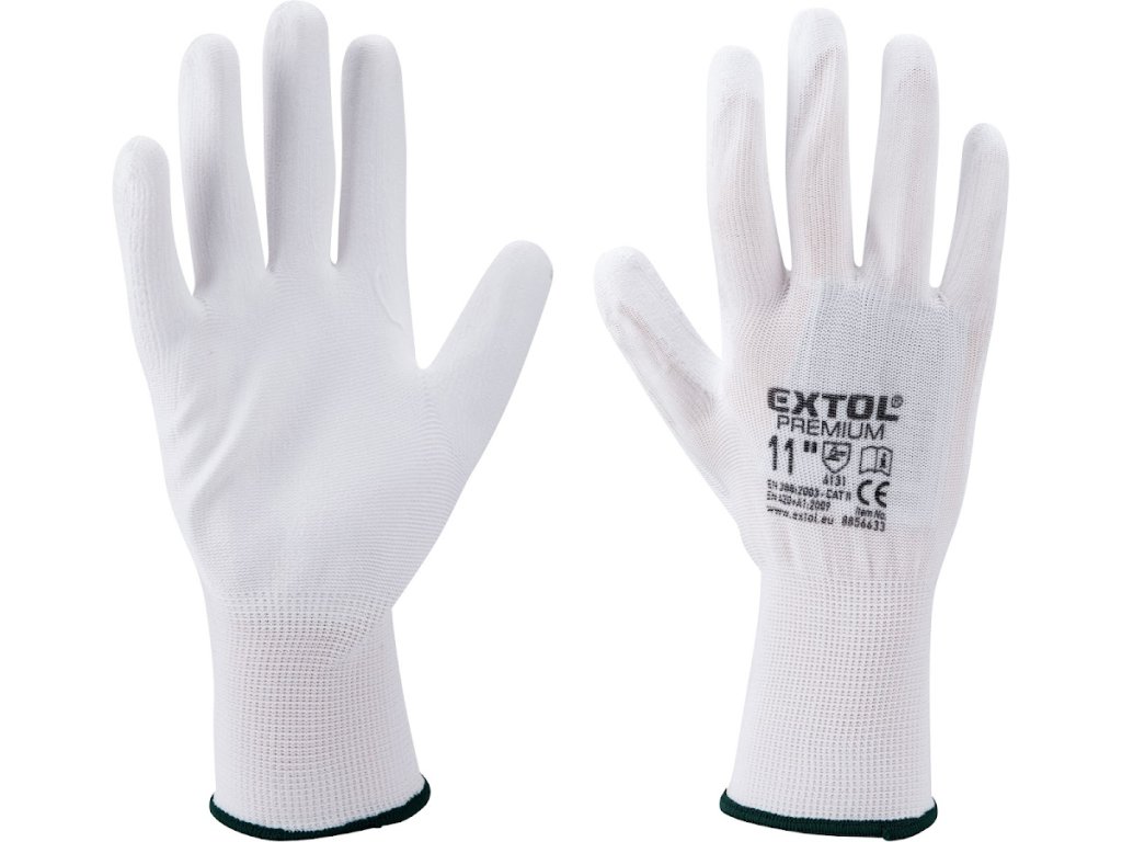 Mănuși din poliester, semi-înmuiate în PU, alb, dimensiune 10"