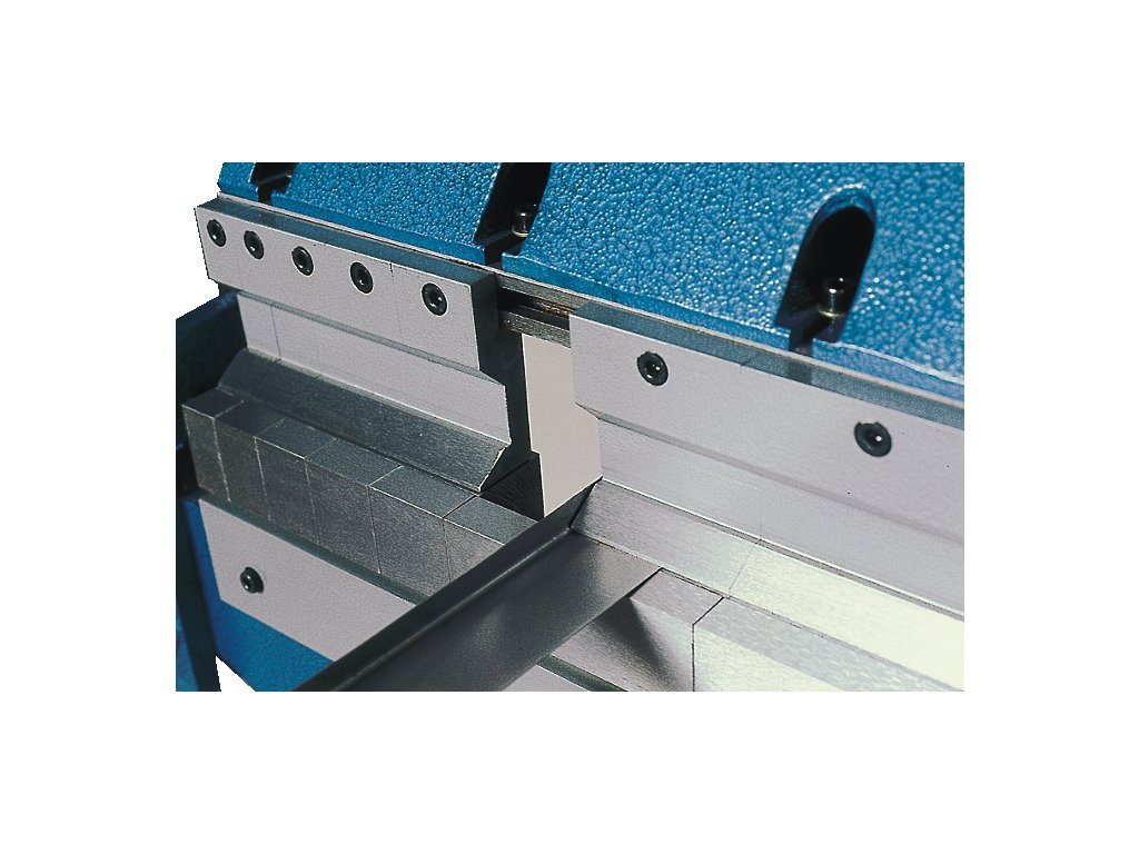 Maşină de îndoit tablă cu şipca superioară şi inferioară împărţită, ceea ce lărgeşte semnificativ posibilităţile de îndoire a profilurilor. Unghiul 150°, materialul max. 1 050 mm/1,5 mm.