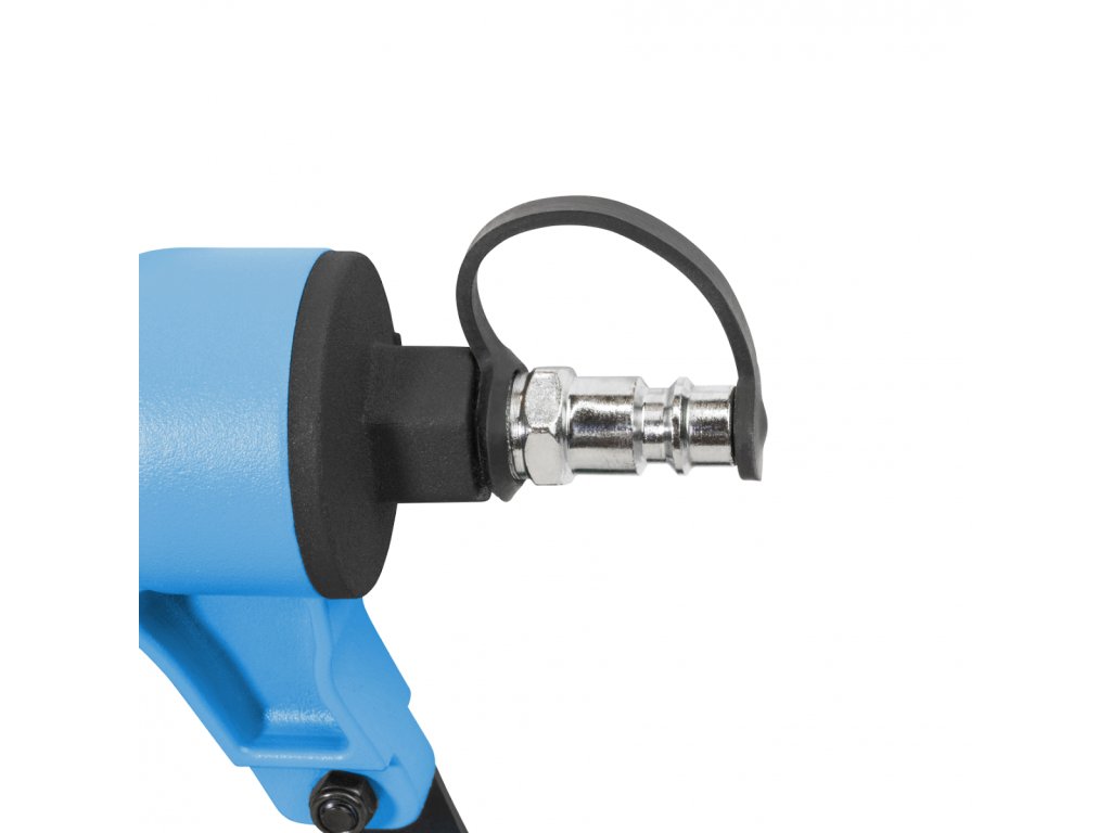 Fotografierea în condiții de siguranță a agrafelor (unghiilor unghiilor) prin apăsarea siguranței pe materialul atașat; ajustarea precisă a adâncimii de lovire a încuietorilor și unghiilor; direcția reglabilă a aerului de evacuare.