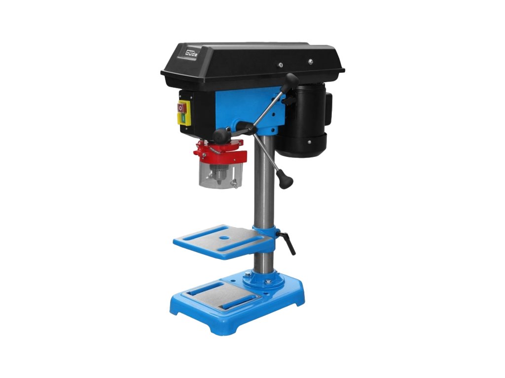 Mașina de găurit de masă, fiabilă, pentru ateliere de casă, cu mandrină rapidă, reglarea manuală a rotațiilor arborelui în cinci trepte 580/850/1.220/1.650 și 2.650/min este destinată găuririi metalelor, lemnului, maselor plastice etc. Arbore cu prindere conică și rulmenți de precizie cu bile, acționare cu curea, fulii din aluminiu, limitator de adâncime, întrerupător general în carcasă de protecție, placă de bază masivă cu canale pentru prinderea menghinei, masă de lucru rabatabilă cu canale periferice pentru lichidul de răcire, cablu de alimentare 180 cm, protecție IP20.