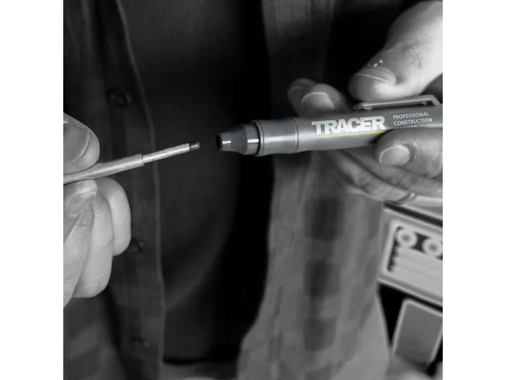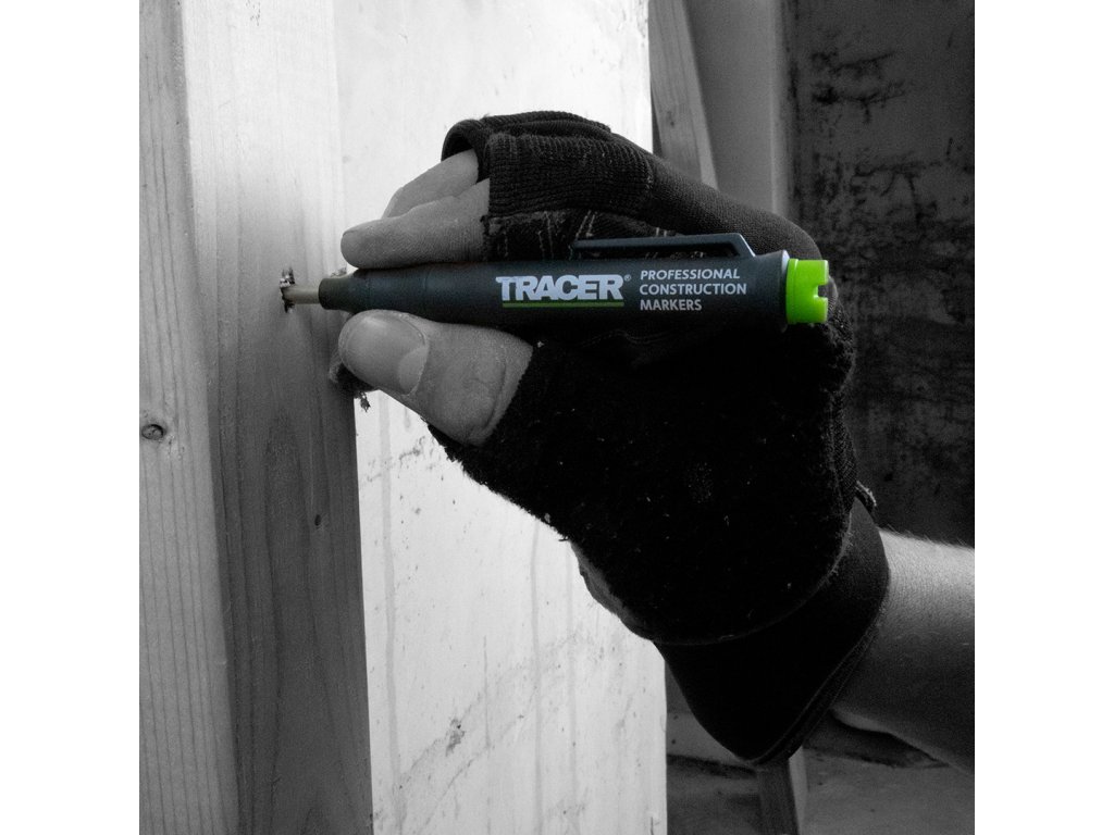 Designul unic al markerului Tracer craft are un vârf cu două fețe care poate fi inversat pentru a vă permite să marcați atât liniile subțiri, cât și cele groase cu un singur stilou. Șapca cu cârlig servește și ca husă, datorită căreia puteți manipula markerul rapid și ușor. Poate scrie pe majoritatea suprafețelor uscate, indiferent dacă sunt lucioase sau aspre.