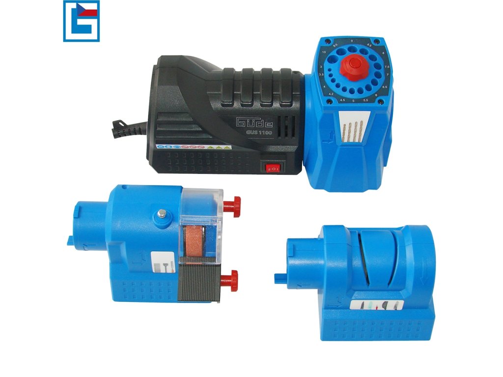 Ascuțitor multifuncțional, conceput pentru ascuțirea cuțitelor/foarfecelor, șlefuirea lamelor daltei/dălților/cuțitelor de scândură sau ascuțirea/modelarea vârfurilor burghielor spiralate (→ "3 în 1").