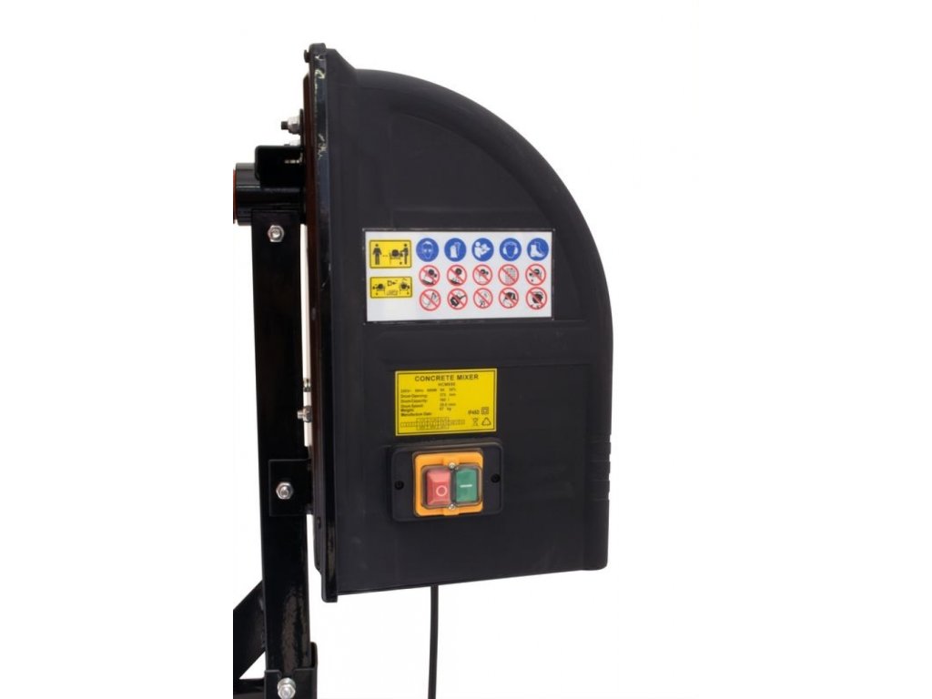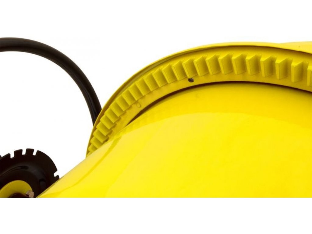 Roată de comandă manuală (diametru →: 540 mm; reglarea în 18 poziții a înclinației tamburului de amestecare, inclusiv posibilitatea de a-l înclina pe ambele părți); Tambur de 130 l cu două lame de amestecare.
