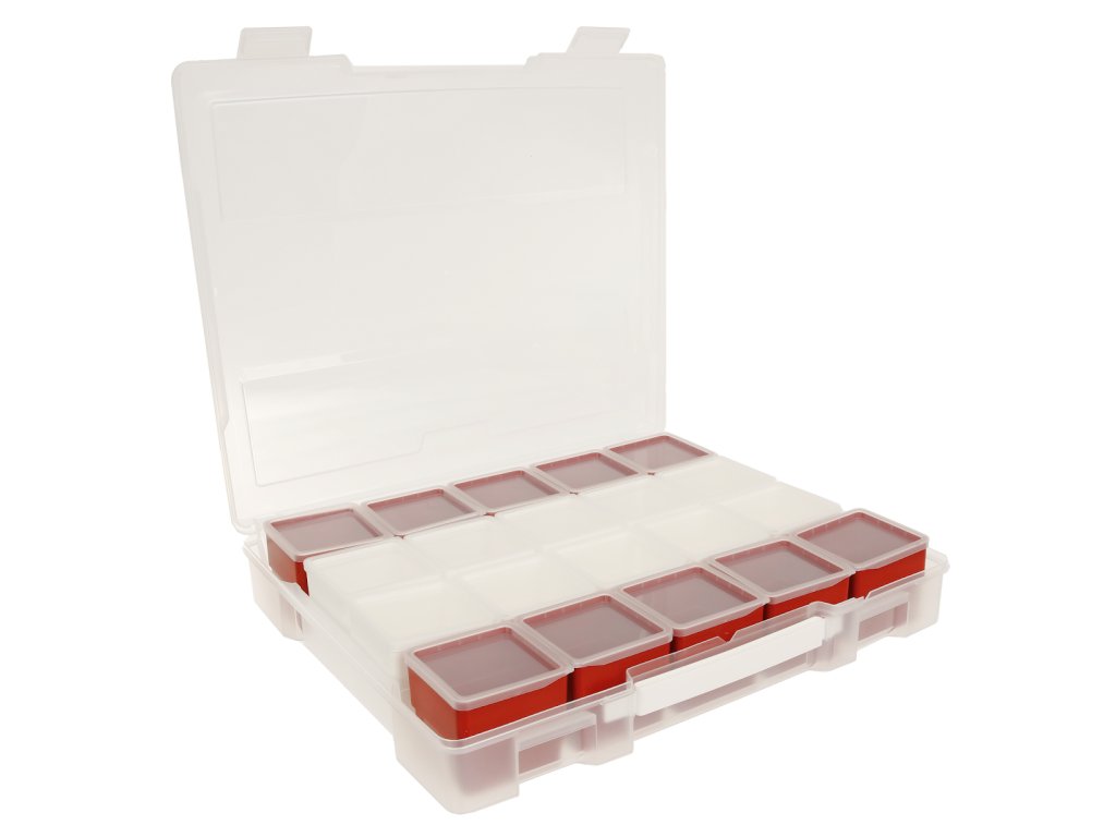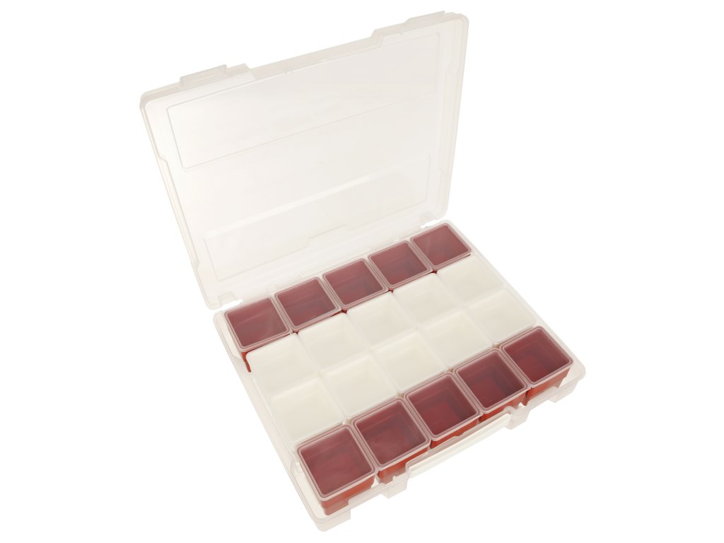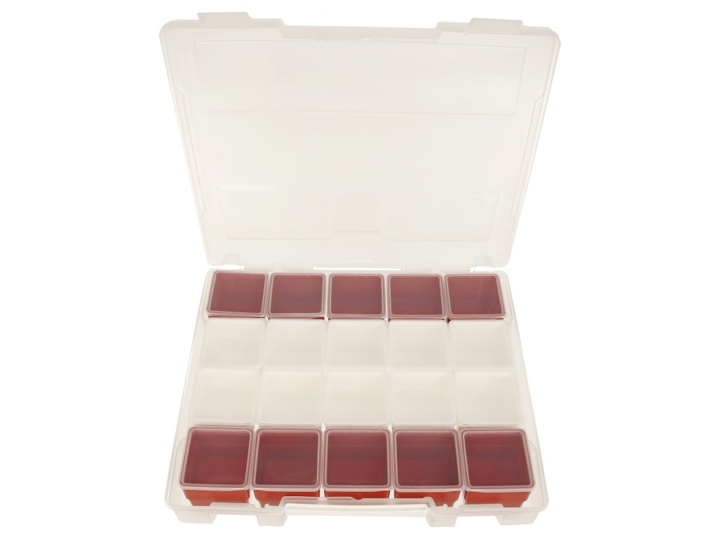 Depozitare mobilă a elementelor de fixare și a altor piese mici cu 20 de carcase pătrate separate. Potrivit pentru articole de artă și meșteșuguri, bijuterii, chei sau alte obiecte mici. Fiecare cutie de 74 x 74 x 64 mm are propriul capac pentru a preveni amestecarea conținutului. Dimensiuni totale (l)404 x (d)349 x (h)73 mm.