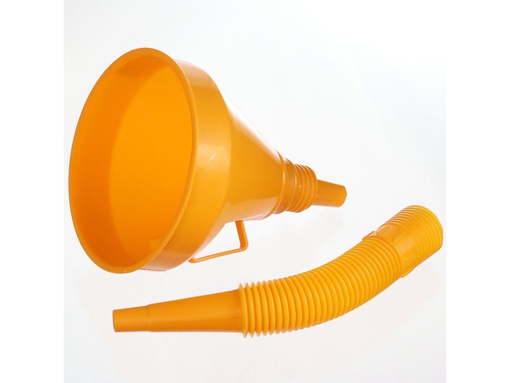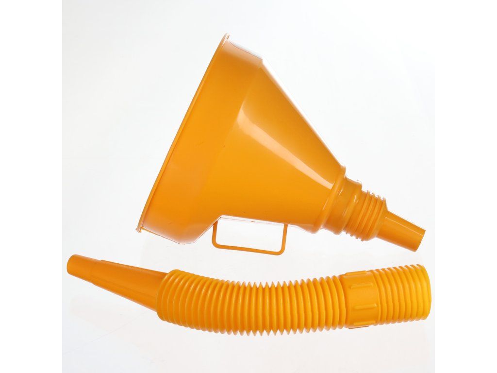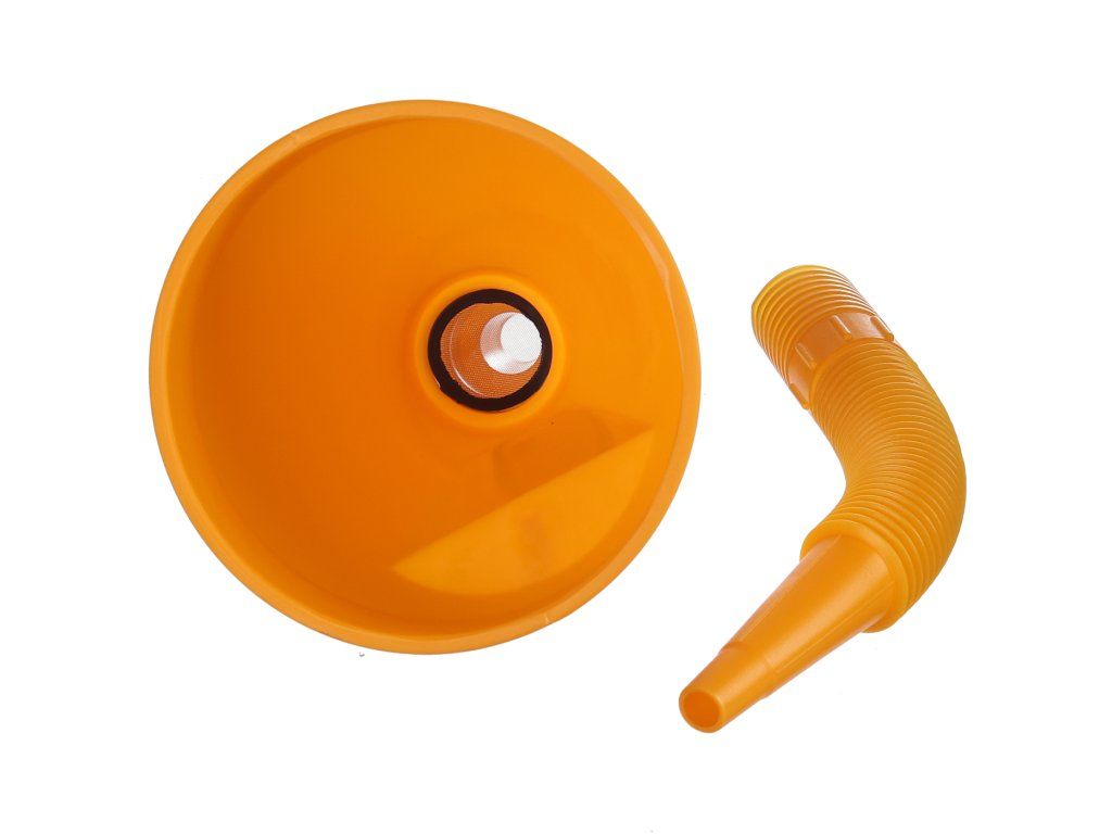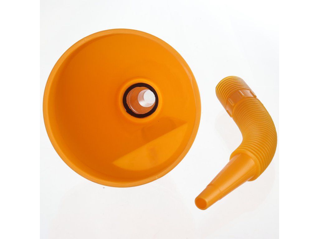 Pâlnie de plastic cu un filtru de sită inoxidabil. Diametru: 145 mm, prelungitor din ţeavă: 250 mm.