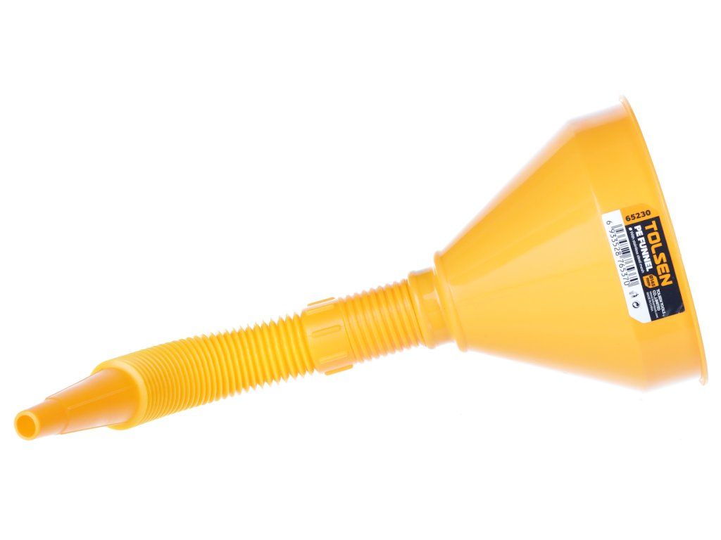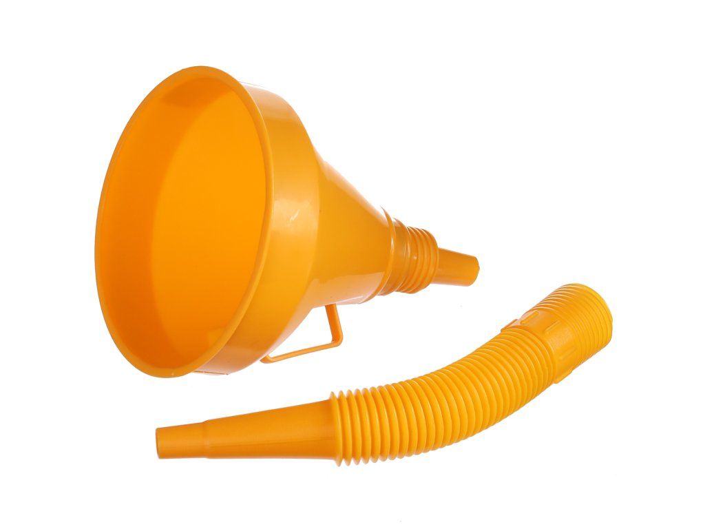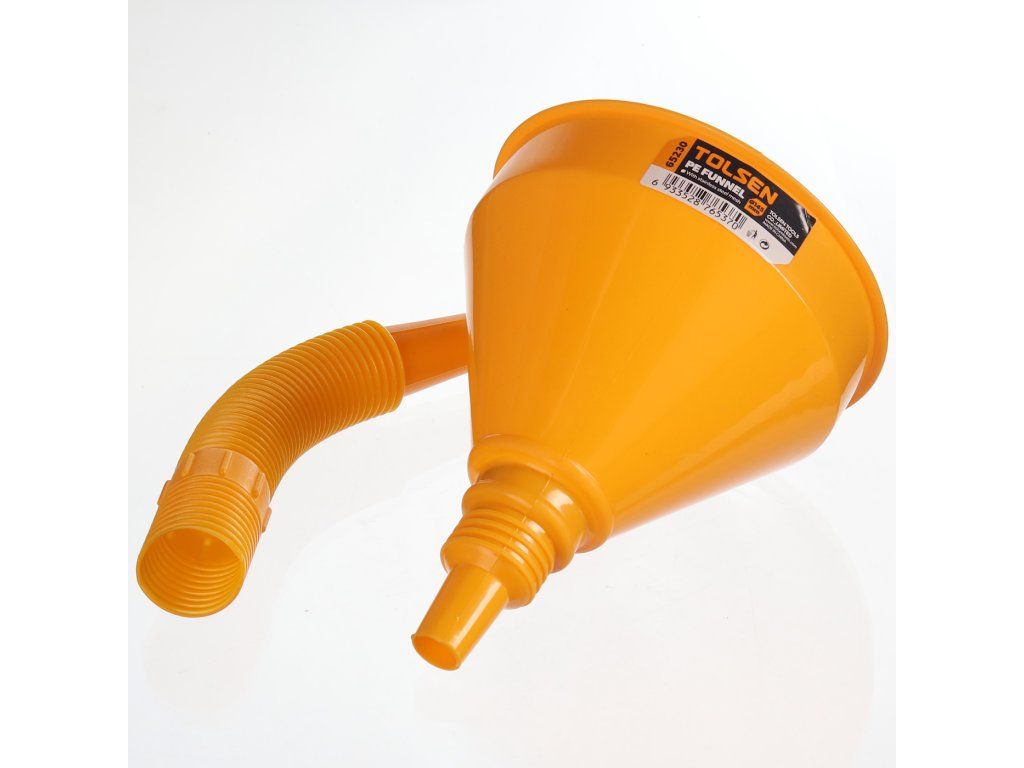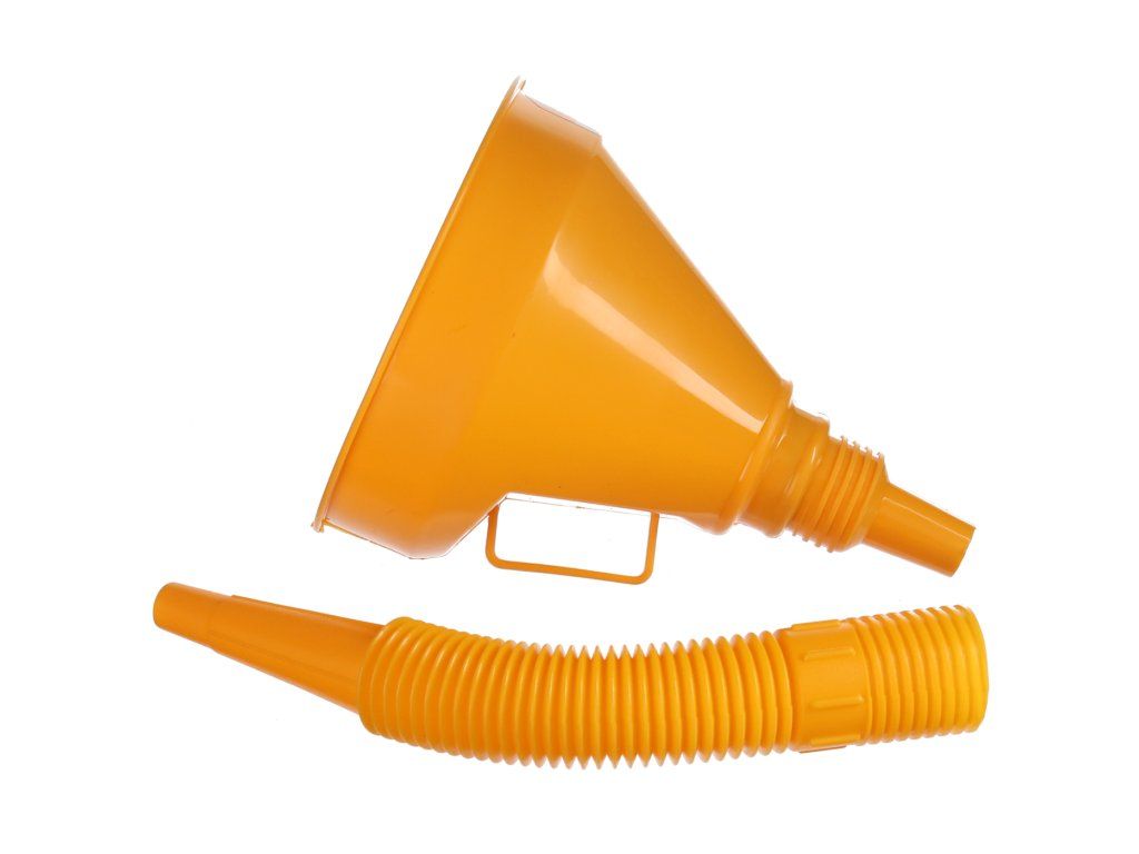 Pâlnie de plastic cu un filtru de sită inoxidabil. Diametru: 145 mm, prelungitor din ţeavă: 250 mm.